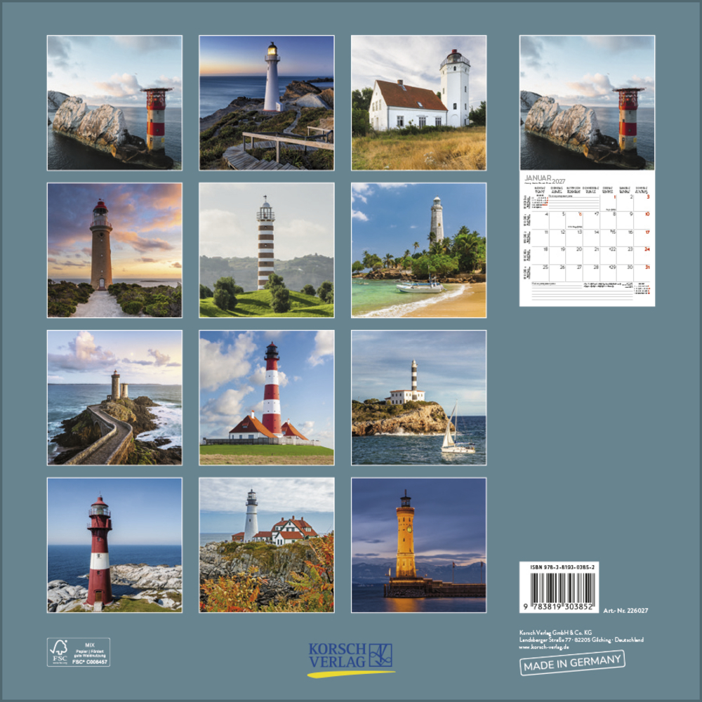 Die vielgestaltigen, bunten Leuchttürme an den Küsten der Weltmeere leiten nicht nur Schiffe sicher in den Hafen, sondern sind heute auch touristische Attraktionen. Zwölf dieser beeindruckenden Bauwerke aus allen Regionen der Erde kann man in diesem Kalender bewundern.