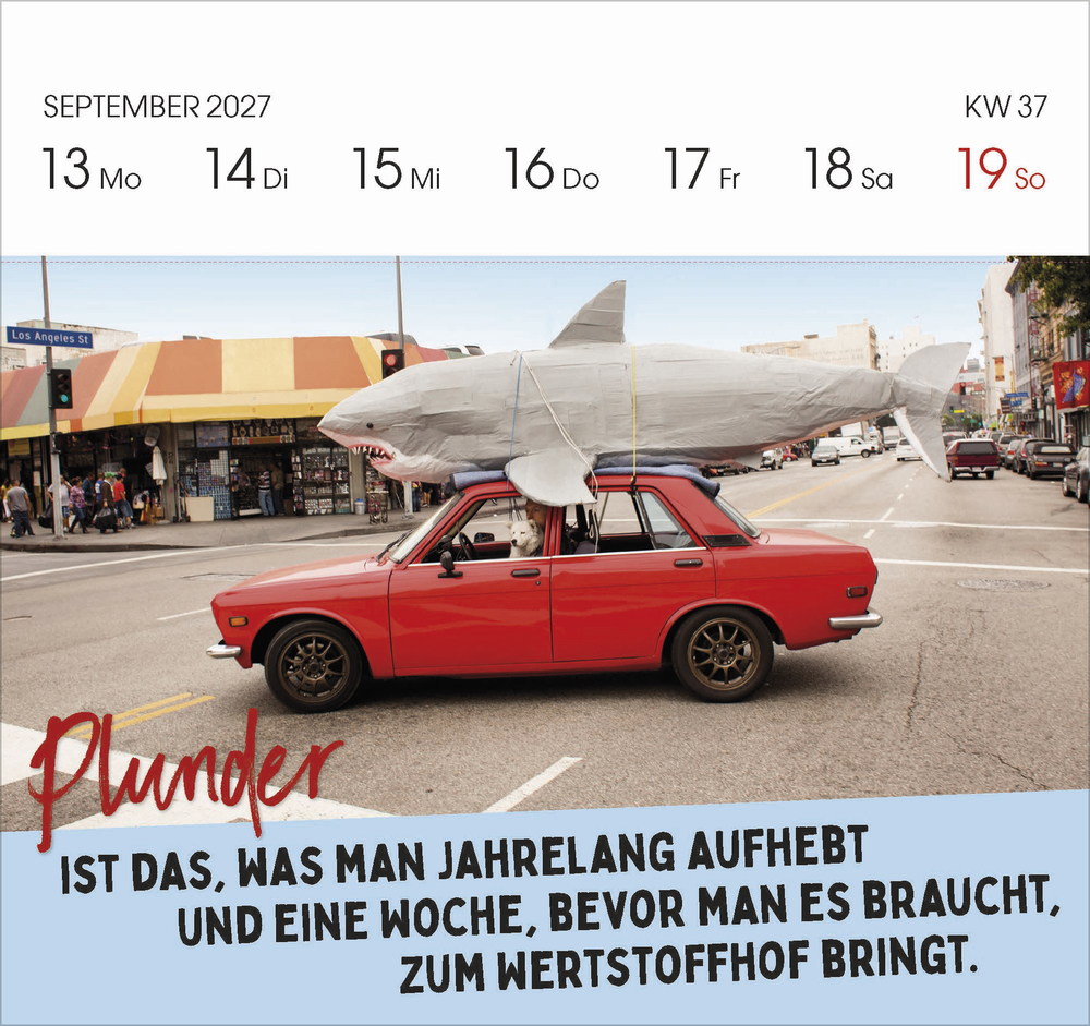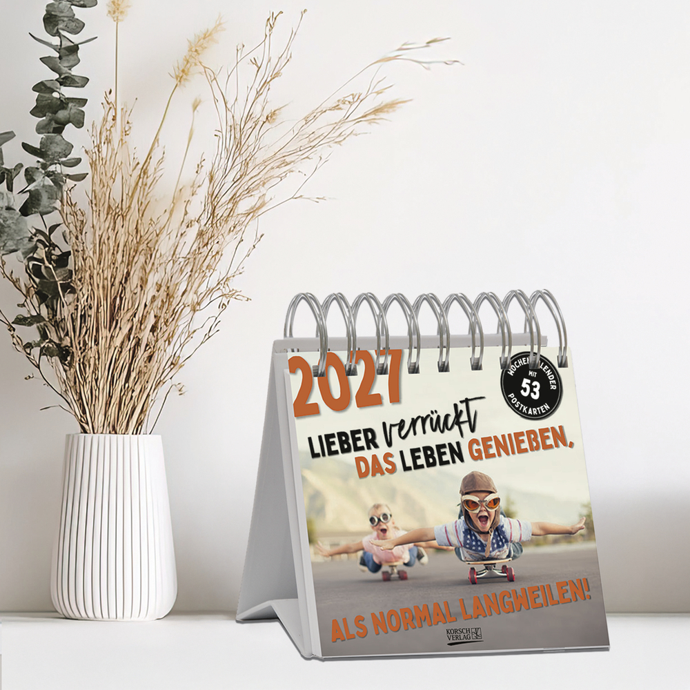 Dieser Kalender ist der perfekte Jahresbegleiter für alle, die lieber verrückt das Leben genießen, als sich normal zu langweilen. Skurrile Fotos und coole Sprüche ergeben für jede Woche eine unschlagbar witzige Kombination. Perfekt als Geschenkidee oder zum selbst behalten. Aufstellbarer Kalender mit 53 Postkarten zum Heraustrennen, Sammeln, an den Kühlschrank pinnen oder Verschicken.