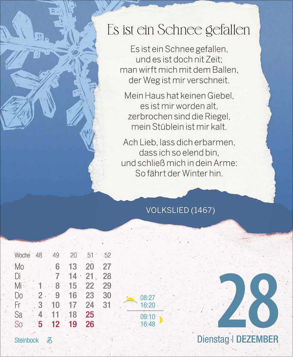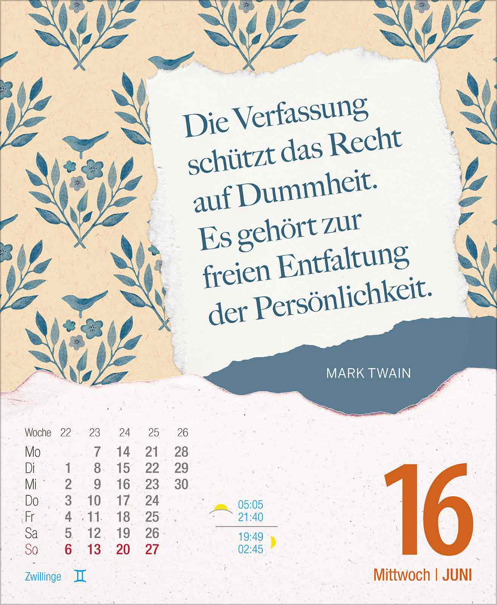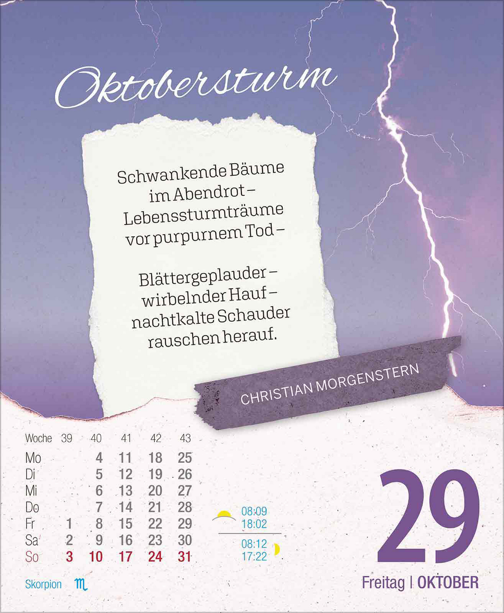 In diesem Kalender sind Gedanken, Zitate und Gedichte bekannter Autorinnen und Autoren in einem modernen Look in Szene gesetzt. Wunderschön gestaltet und ein Must-have für alle Literatur-Fans.