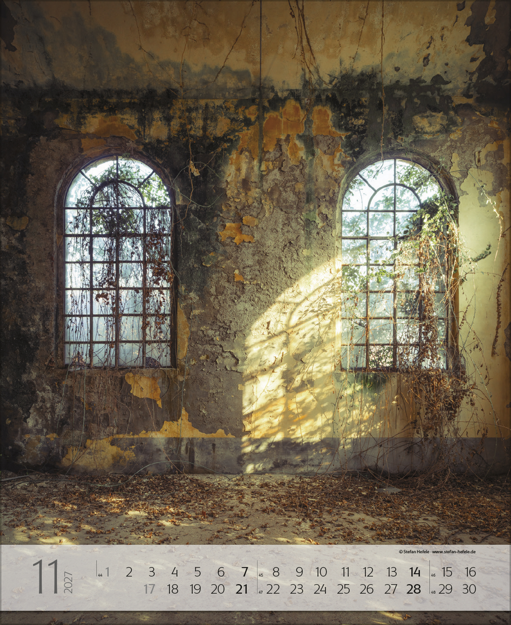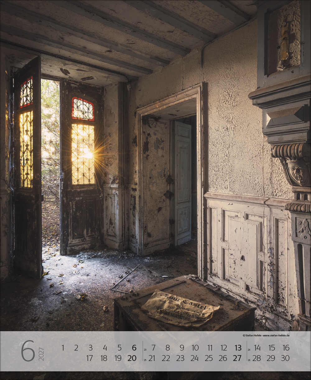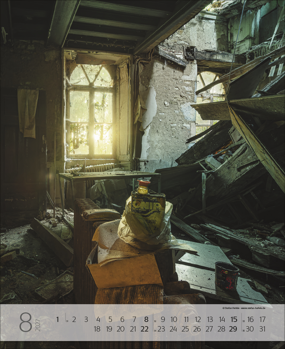 Die Lost-Places-Fotografie ist heute ein echtes Abenteuer, dem sich immer mehr FotografInnen widmen. Vom Ruhm vergangener Größe und dem Charme des Verfalls künden in diesem Kalender die kunstvollen Aufnahmen des Fotografen Stefan Hefele. Ehemalige Villen, Theater, Schlösser, Sanatorien oder gar Schwimmbäder spürt er überall in Europa auf und hält ihre magische-morbide Schönheit für die Ewigkeit fest. Ein cooler Wandschmuck für alle, die das Besondere lieben.