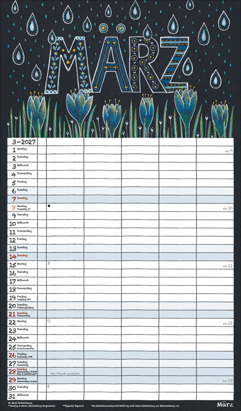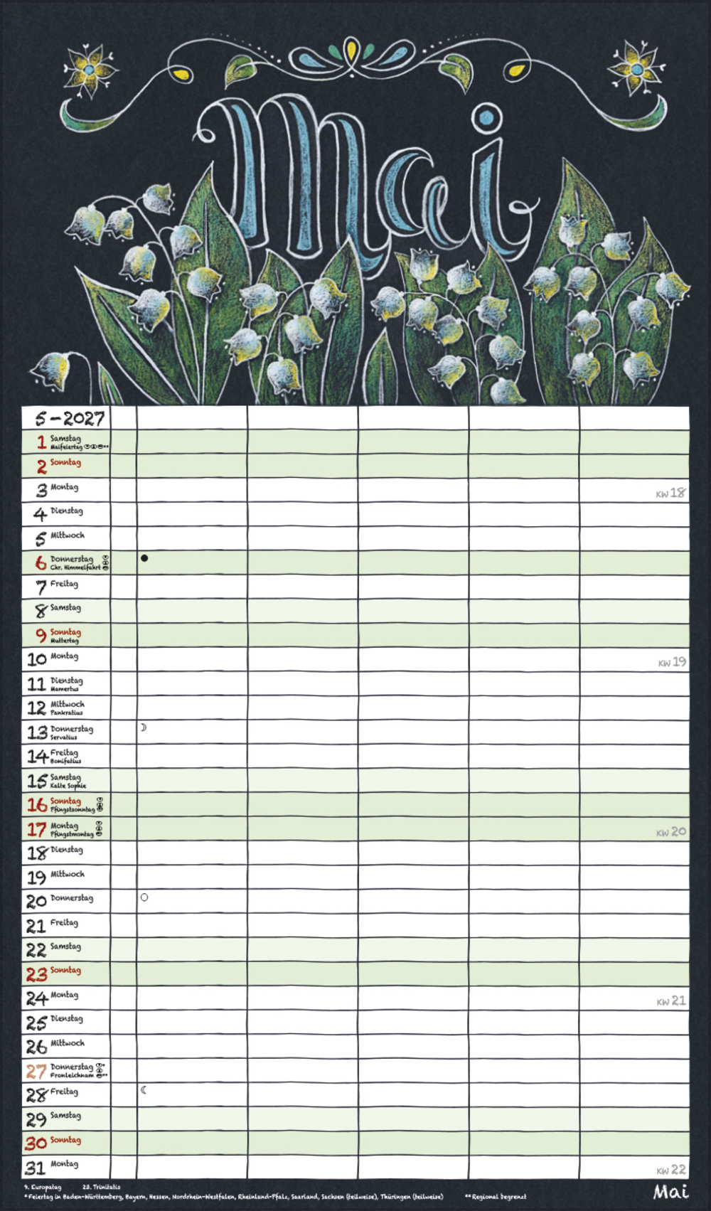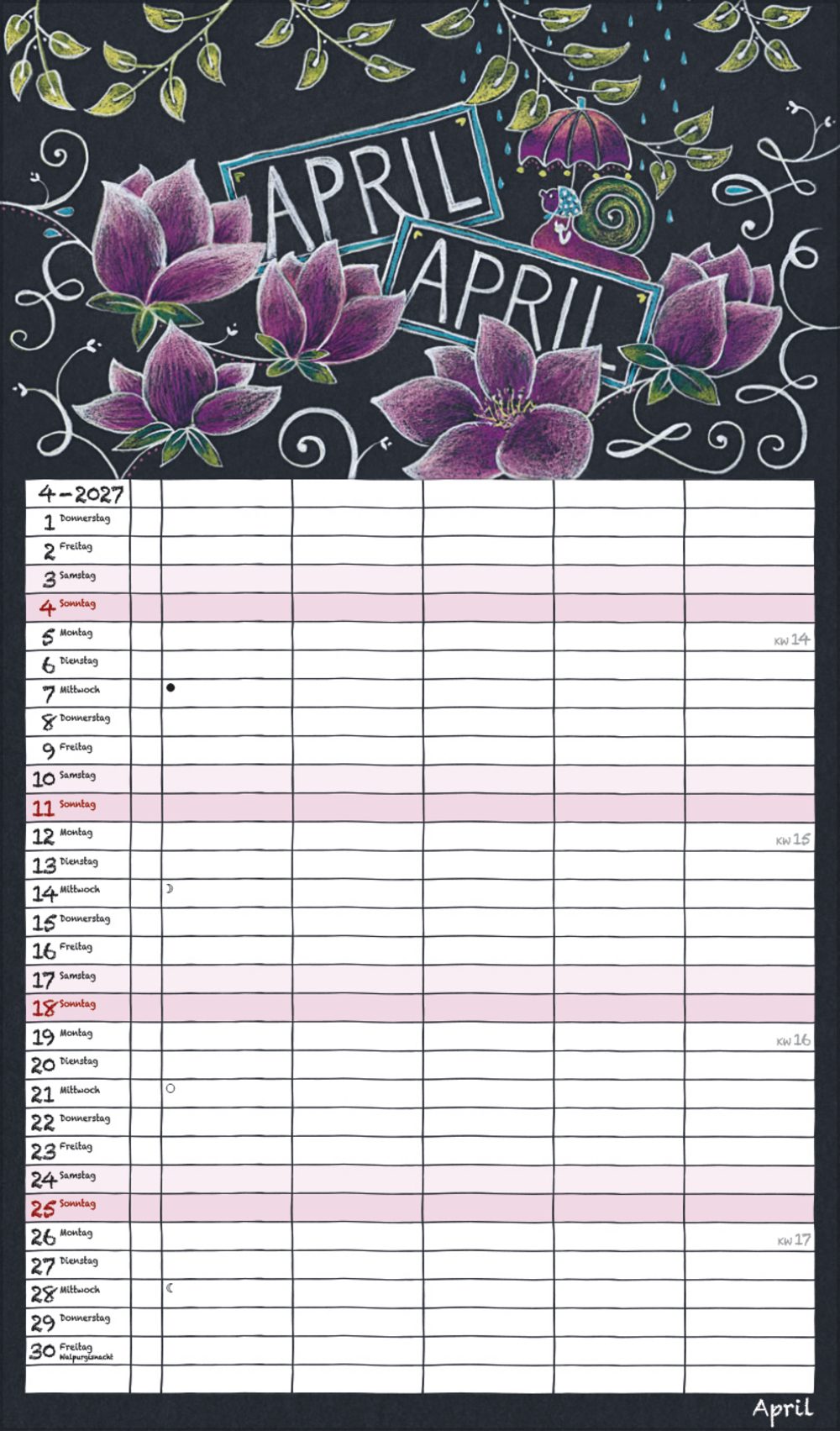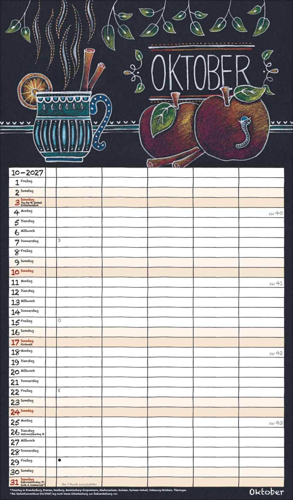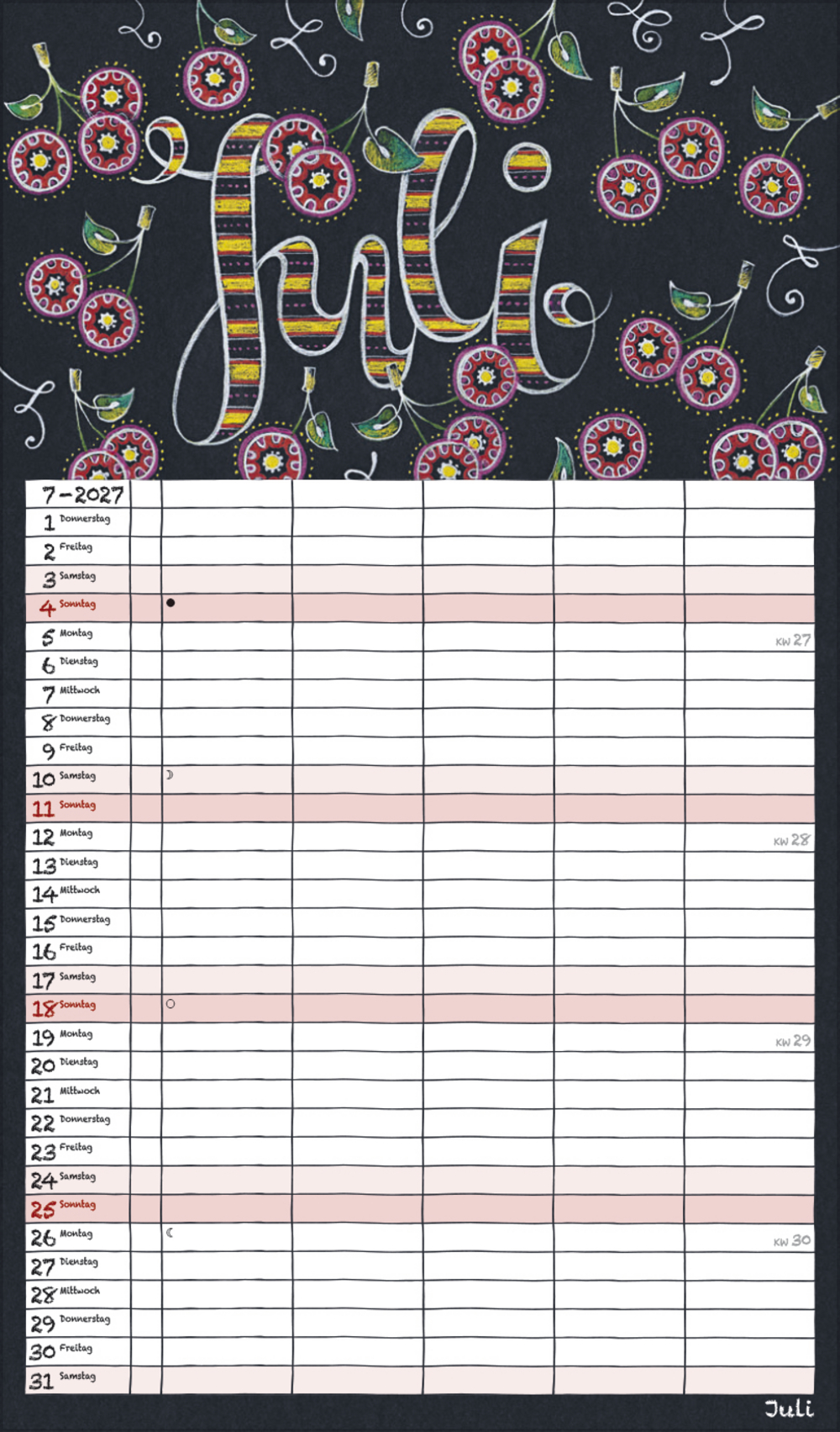 - Praktische Zusatzspalte für Ferien, Müll und weitere Aktivitäten; stabile Rückwand