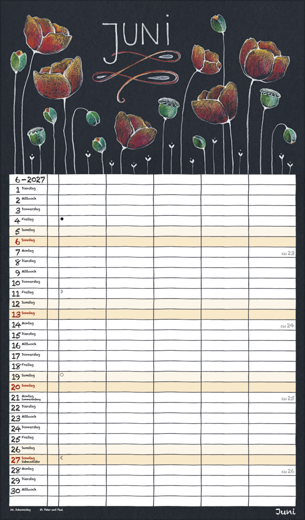 - Übersichtlicher Familienplaner, 5 große Spalten; Format: 27x46 cm