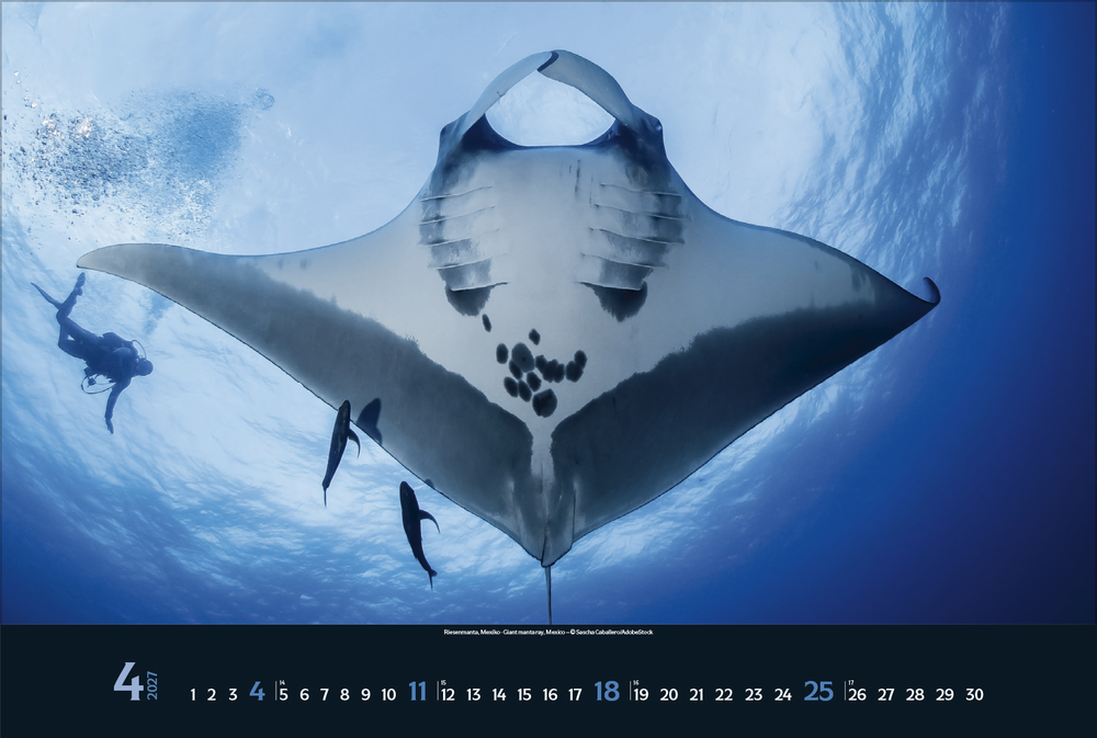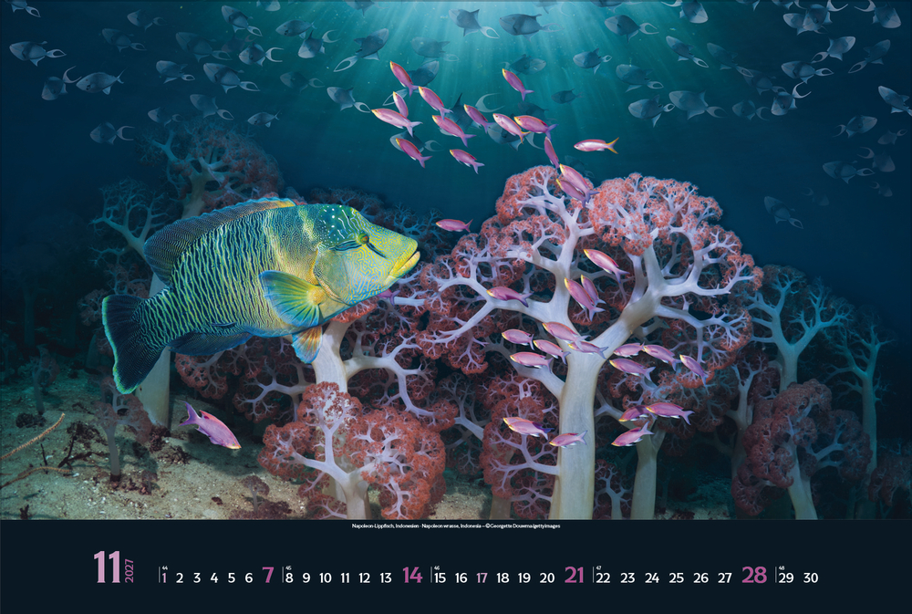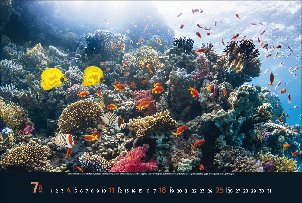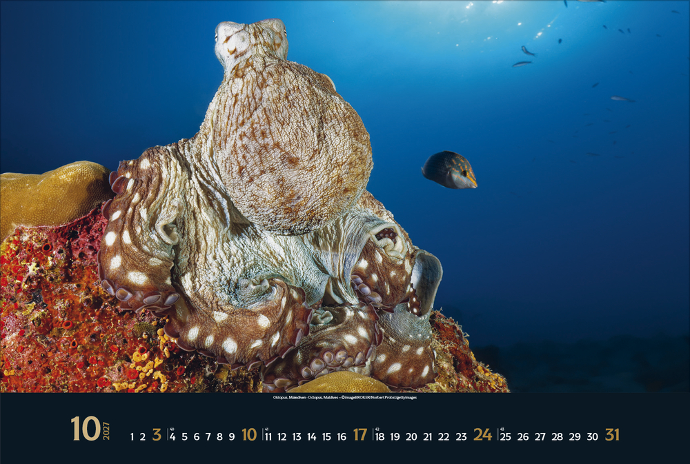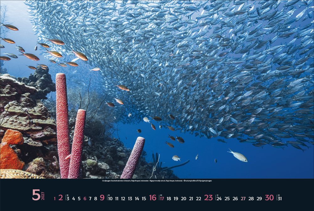 Gigantische Fischschwärme, geheimnisvolle Kraken, schwebende Rochen – die bunte Unterwasserwelt der Meere ist voller einzigartiger Lebewesen, die uns faszinieren. Tauchen Sie ein und genießen Sie jeden Monat eine neue magische Aufnahme aus den Weltmeeren in brillanter Fotoqualität.