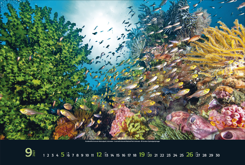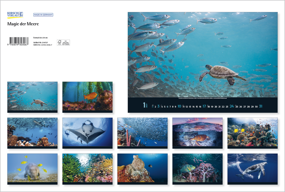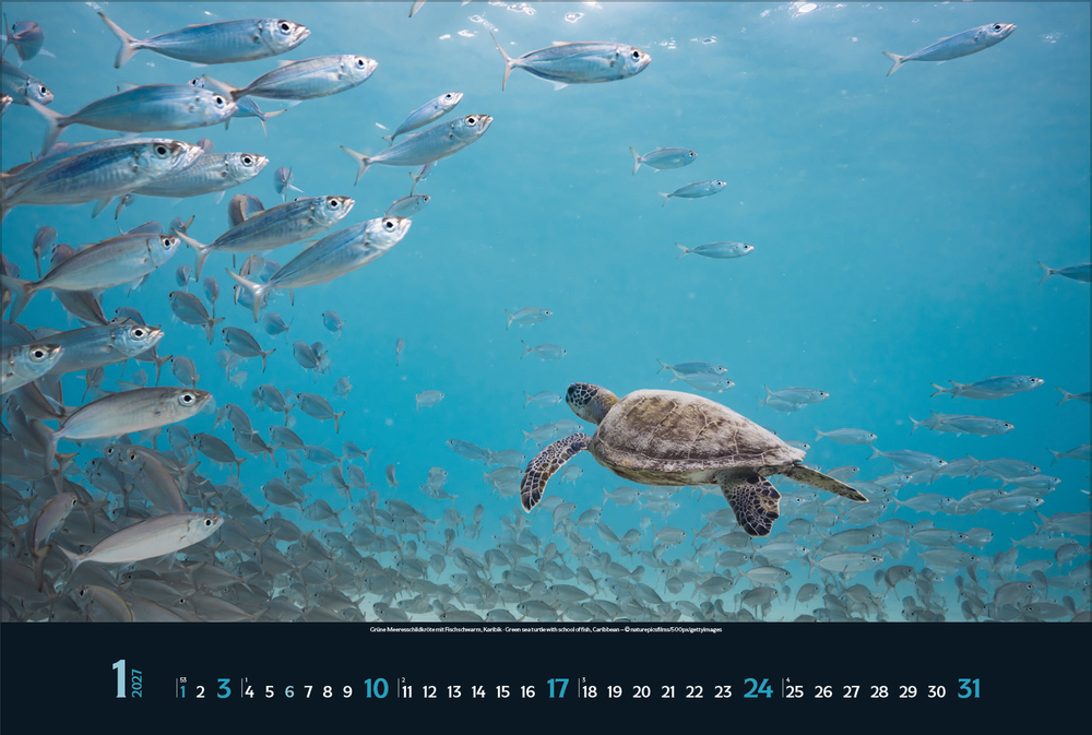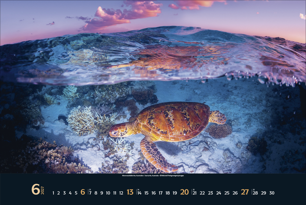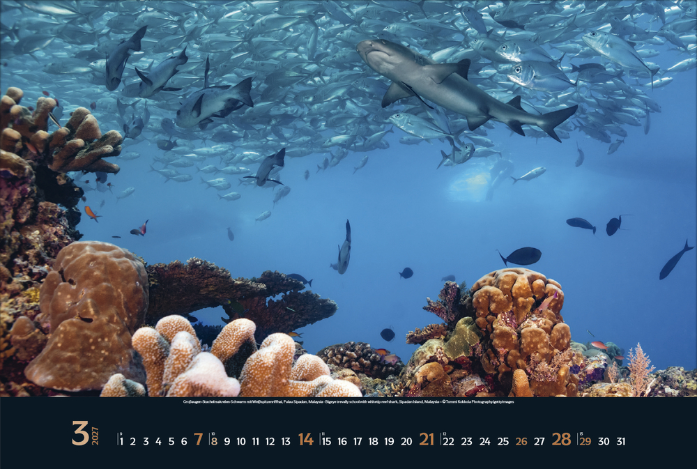 Gigantische Fischschwärme, geheimnisvolle Kraken, schwebende Rochen – die bunte Unterwasserwelt der Meere ist voller einzigartiger Lebewesen, die uns faszinieren. Tauchen Sie ein und genießen Sie jeden Monat eine neue magische Aufnahme aus den Weltmeeren in brillanter Fotoqualität.