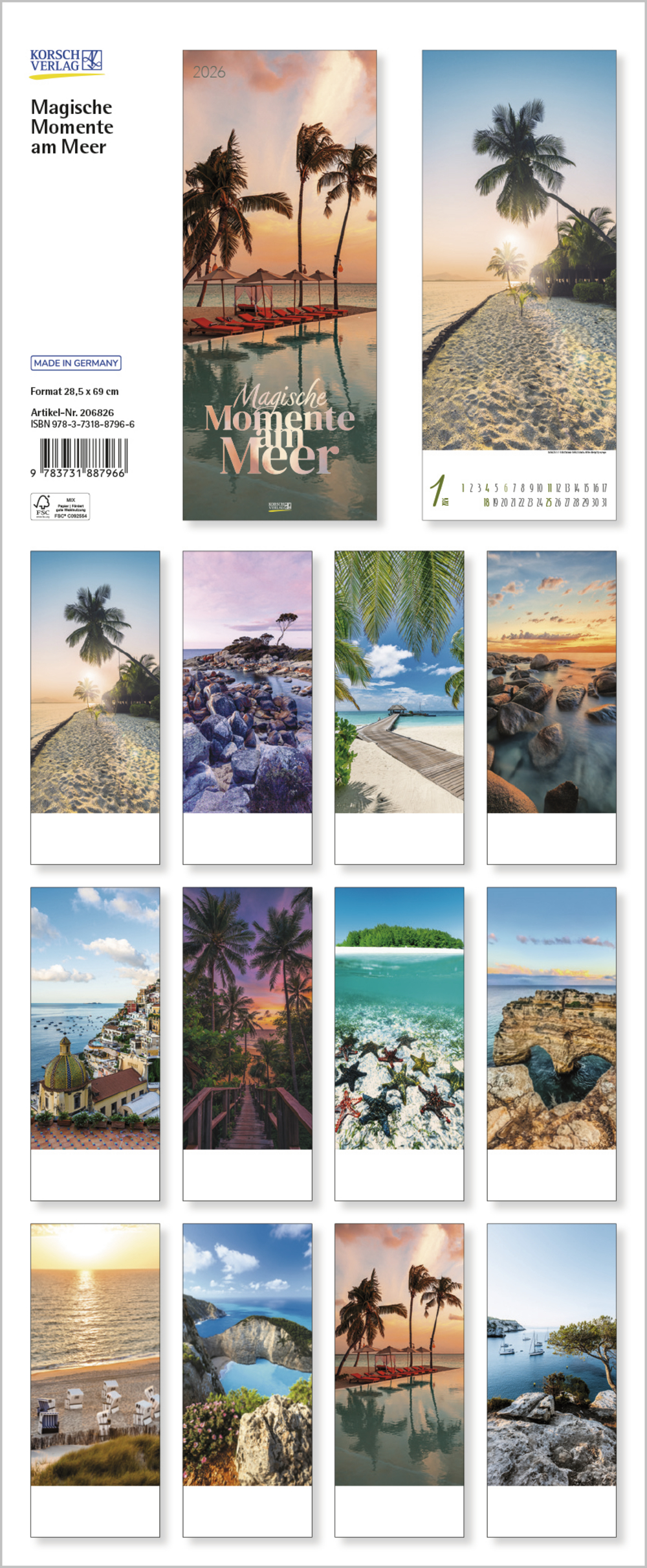 Mit diesem Kalender kann man magische Momente am Meer im spannenden Vertikal-Format genießen. Grandiose Lichtstimmungen verwandeln die Küstenlandschaften und Strände in diesem Kalender in Sehnsuchtsorte voller Magie. Tauchen Sie ein!