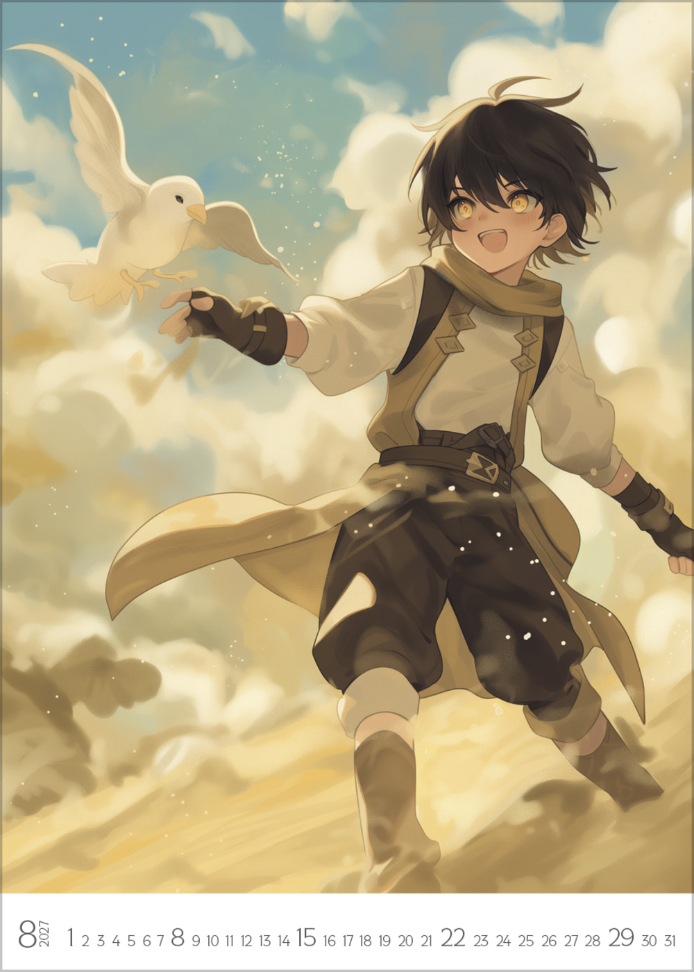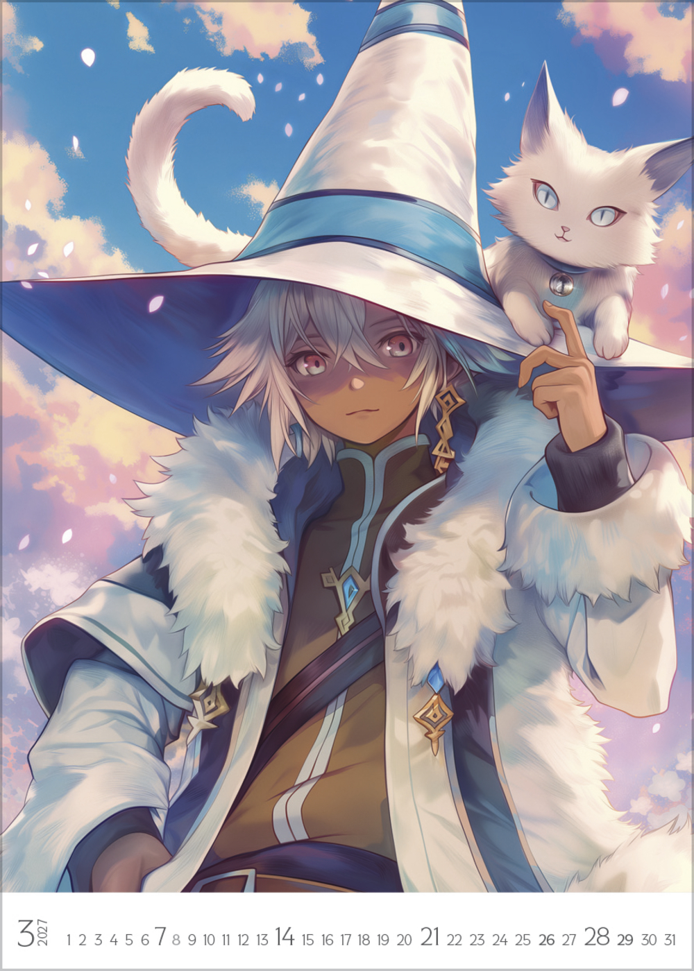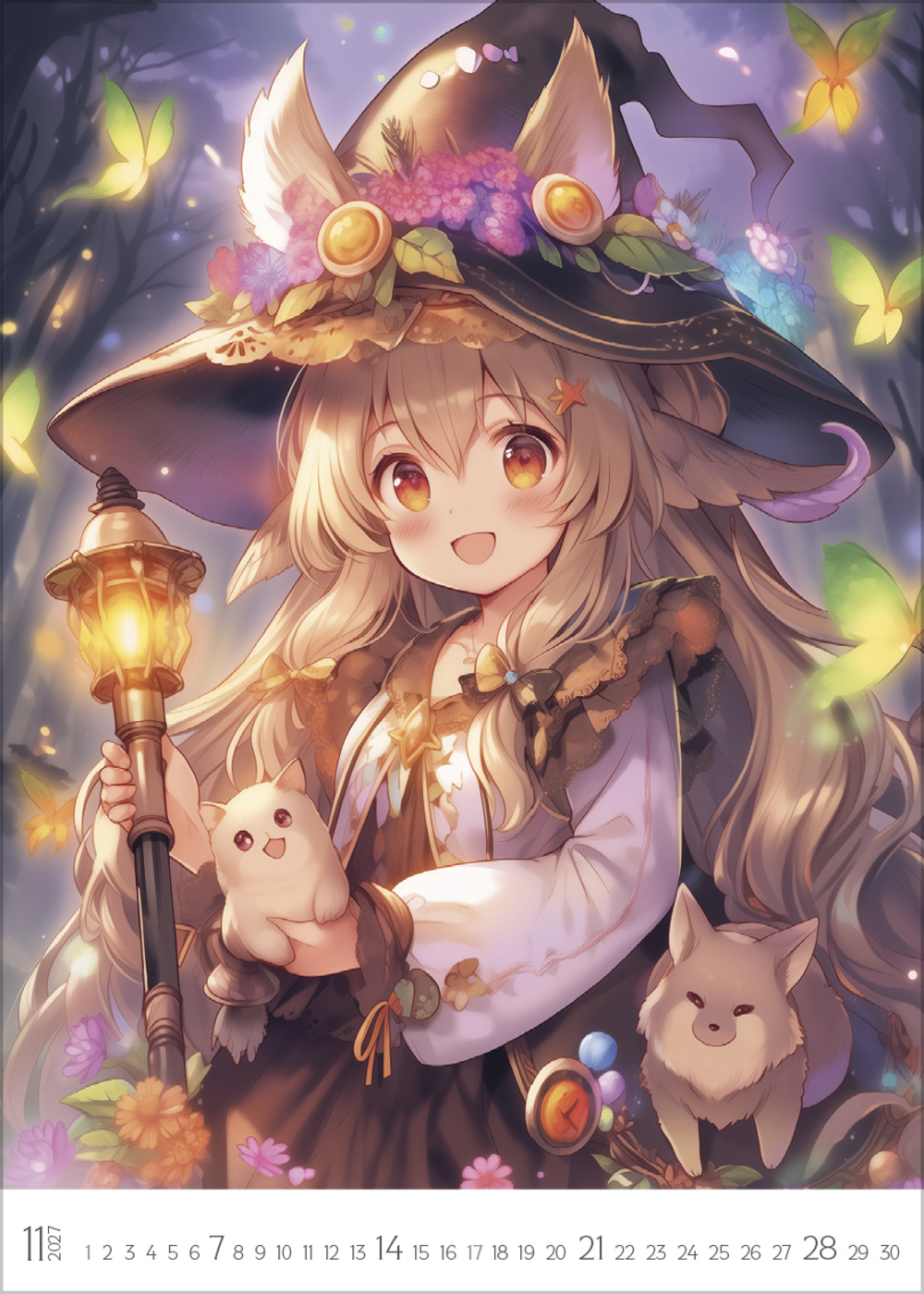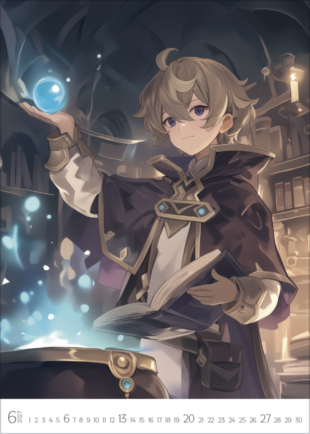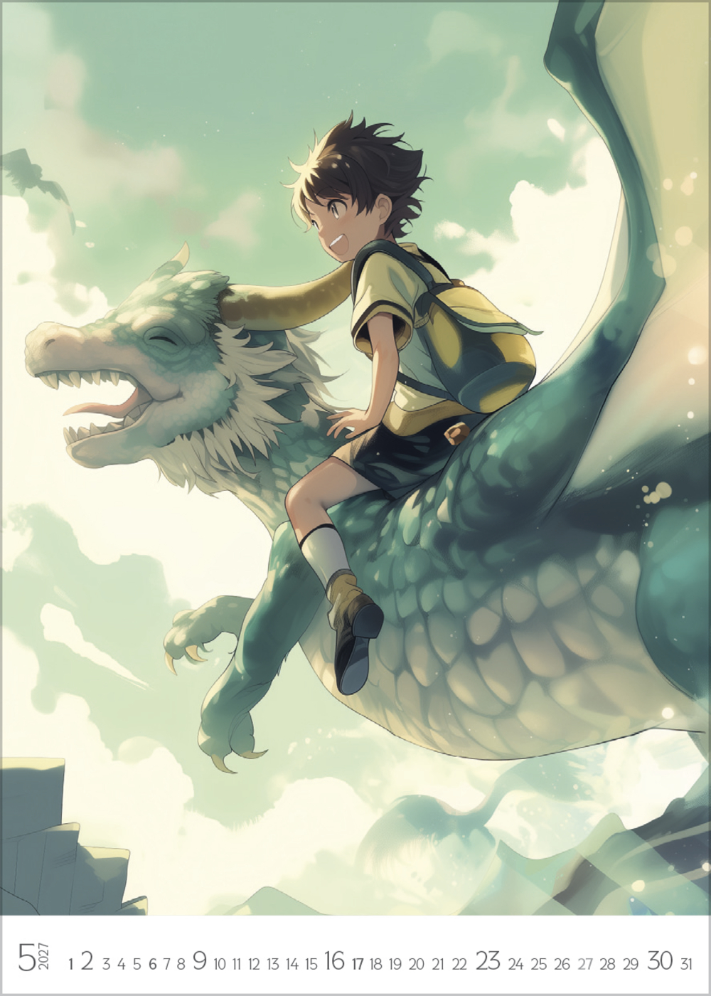 12 Manga-Illustrationen entführen in die Welt fantastischer Wesen: Drachen, tierische Freunde, Hexen und Magier laden zu Abenteuern ein. Dieser farbenfrohe Kalender holt den trendigen Manga-Stil an die Kinderzimmerwand.