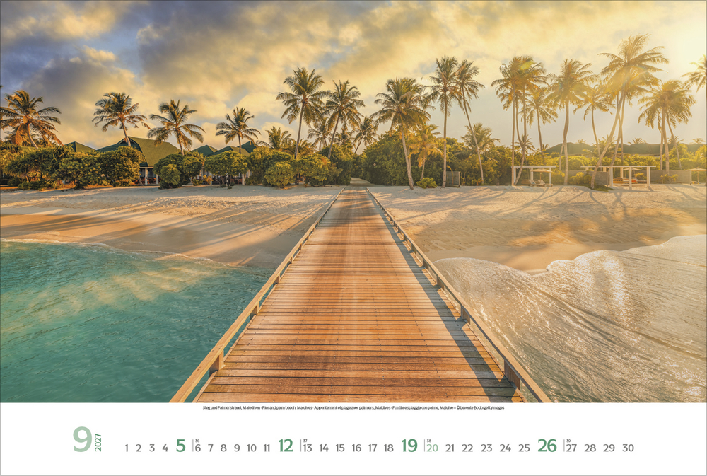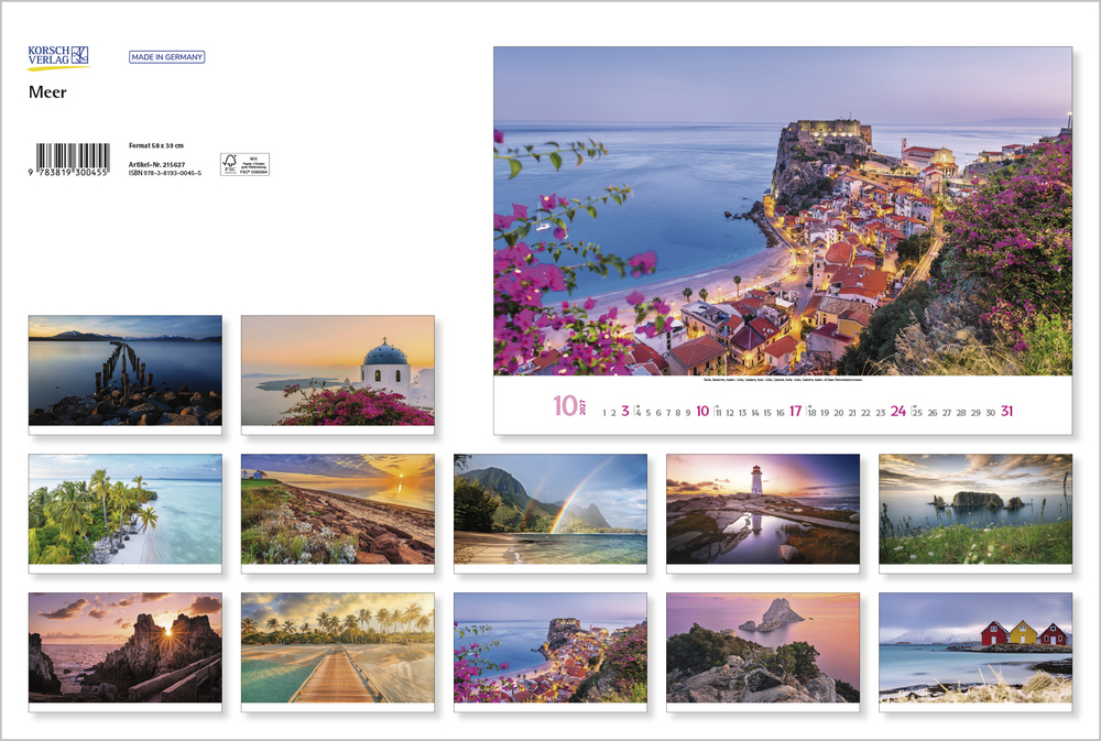 Nicht immer kann man seiner Reiselust so einfach nachgehen und sich zu seinen Lieblingsorten am Meer auf den Weg machen. Dafür kann man herrliche Momente am Meer mit diesem Kalender in den eigenen vier Wänden genießen. Ein grandioser Wandschmuck für alle, deren Herzen beim Klang der Wellen, salziger Luft und sonnigen Stränden höherschlagen.