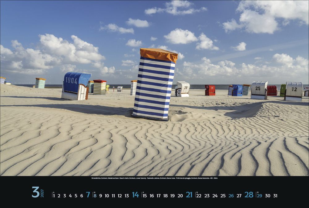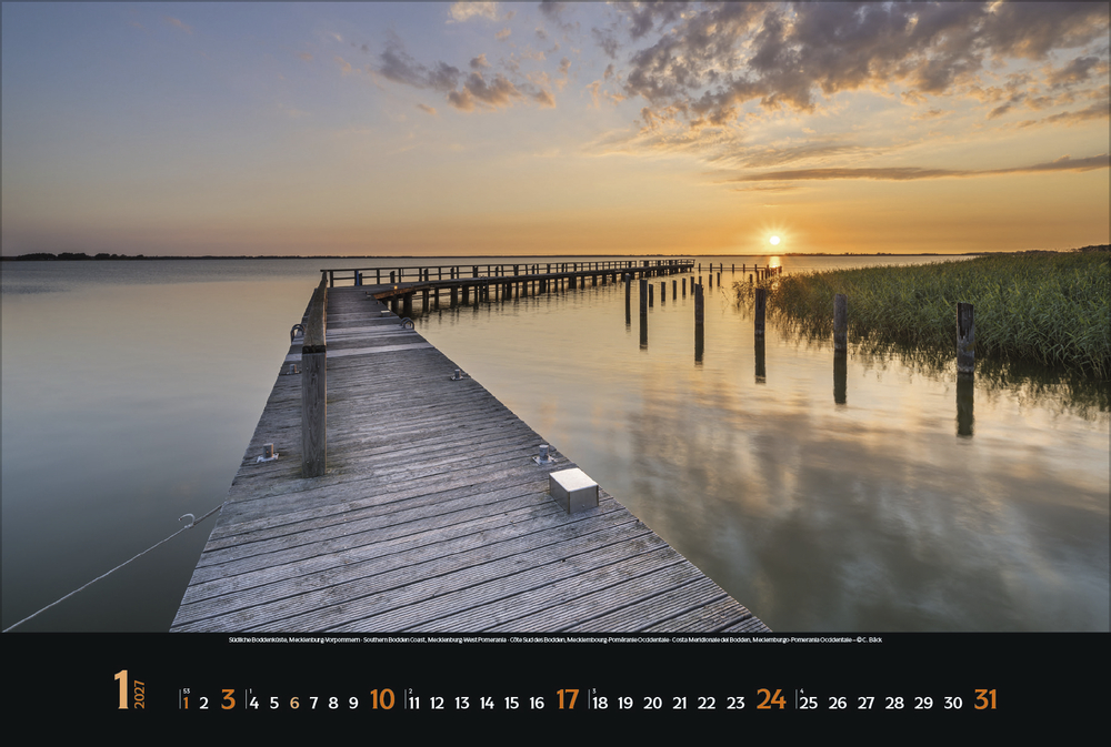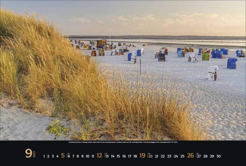 Stimmungsvolle Momente und spektakuläre Meerblicke an der deutschen Nord- und Ostseeküste hält dieser Kalender in zwölf attraktiven Panorama-Fotografien fest.
