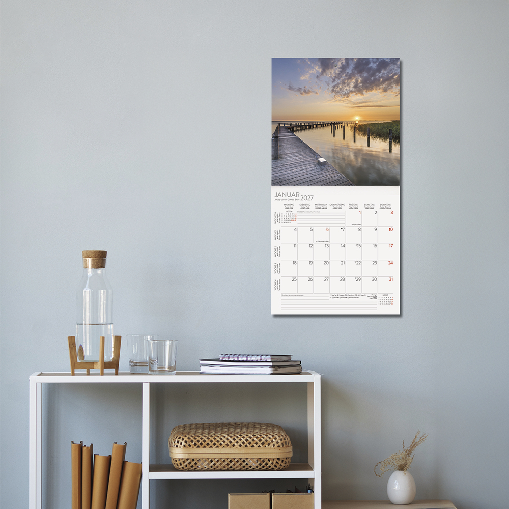 Stimmungsvolle Momente und spektakuläre Meerblicke an der deutschen Nord- und Ostseeküste hält dieser Kalender in zwölf attraktiven Fotografien fest.
