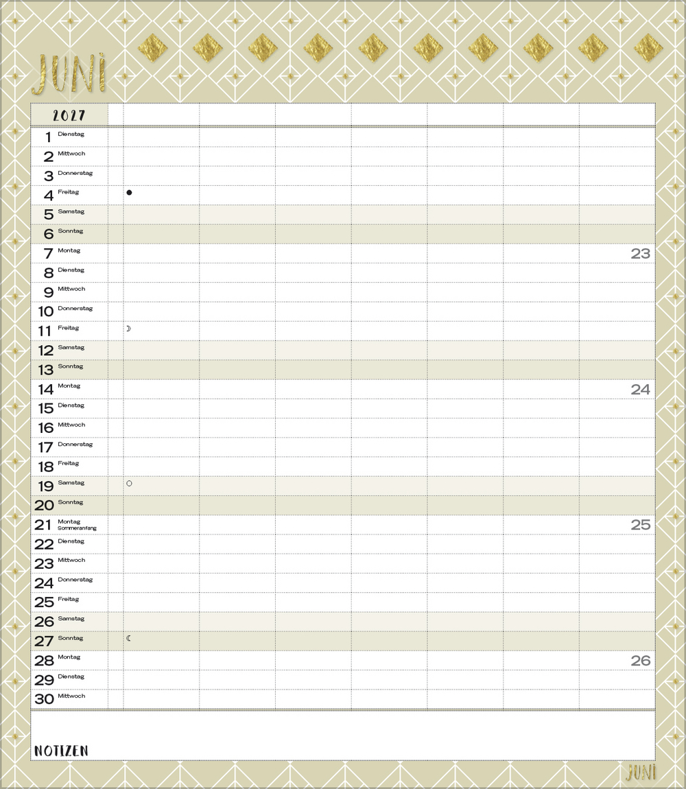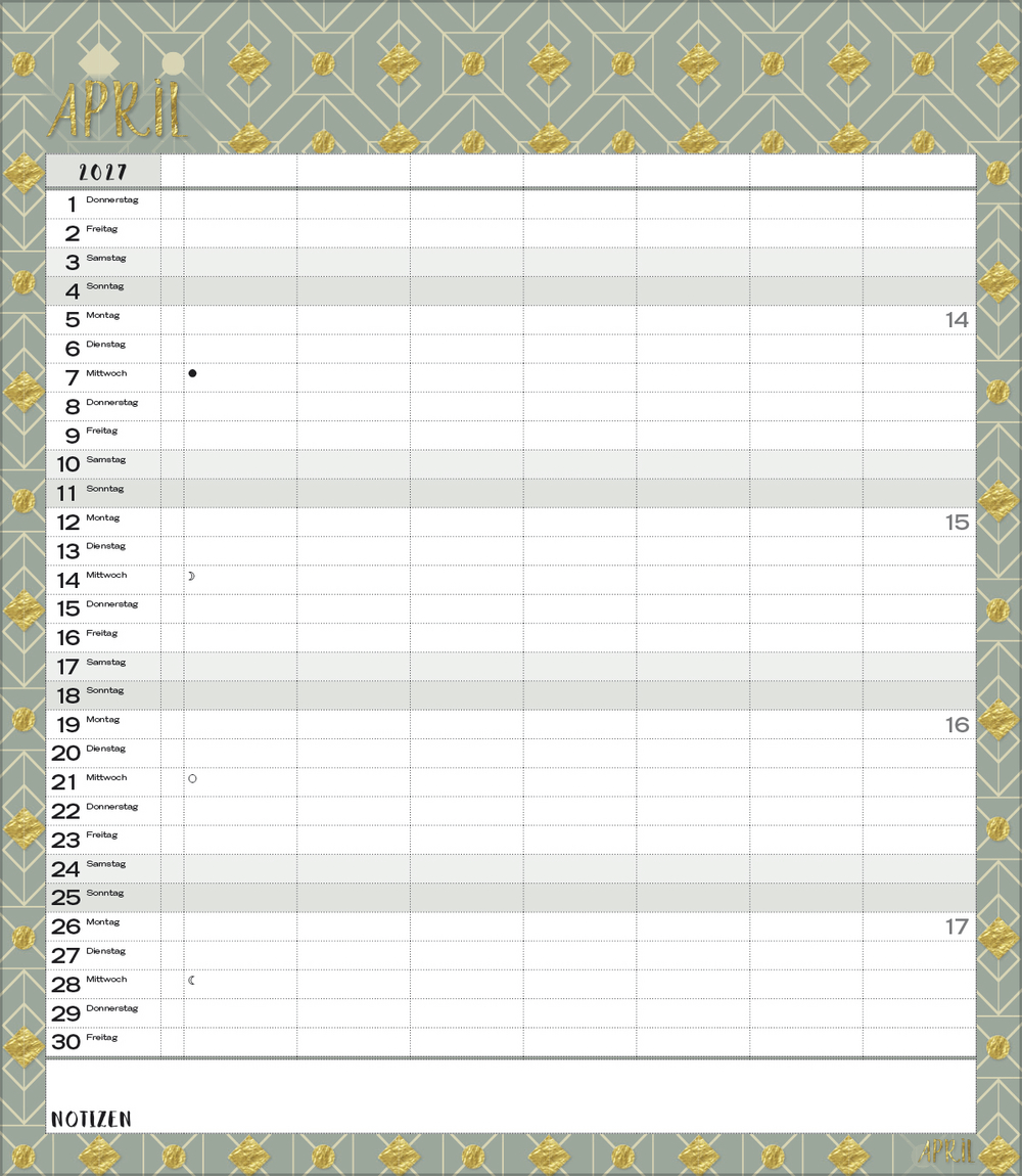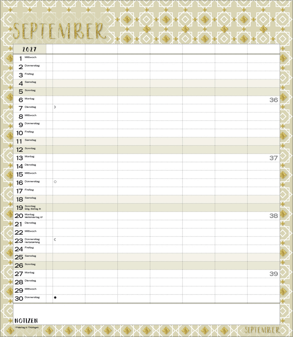 - Terminkalender mit viel Platz für Eintragungen, ohne störende Bilder in den Spalten
