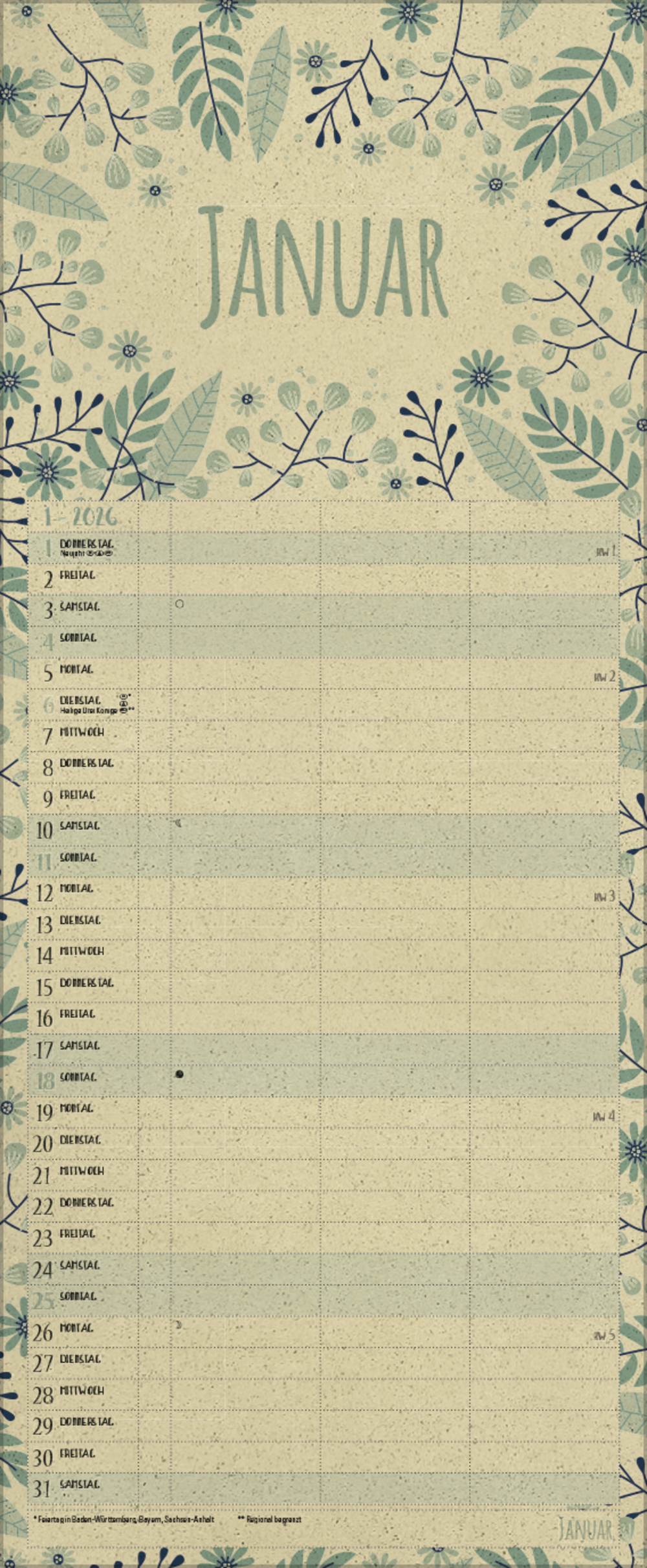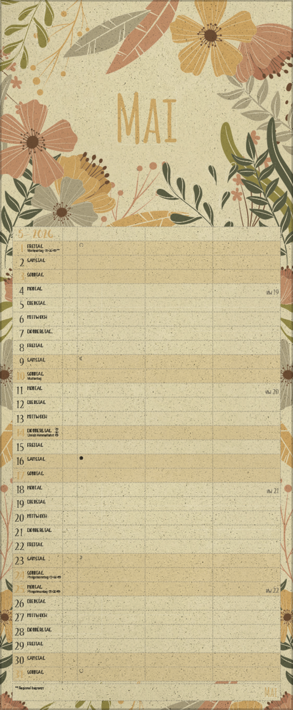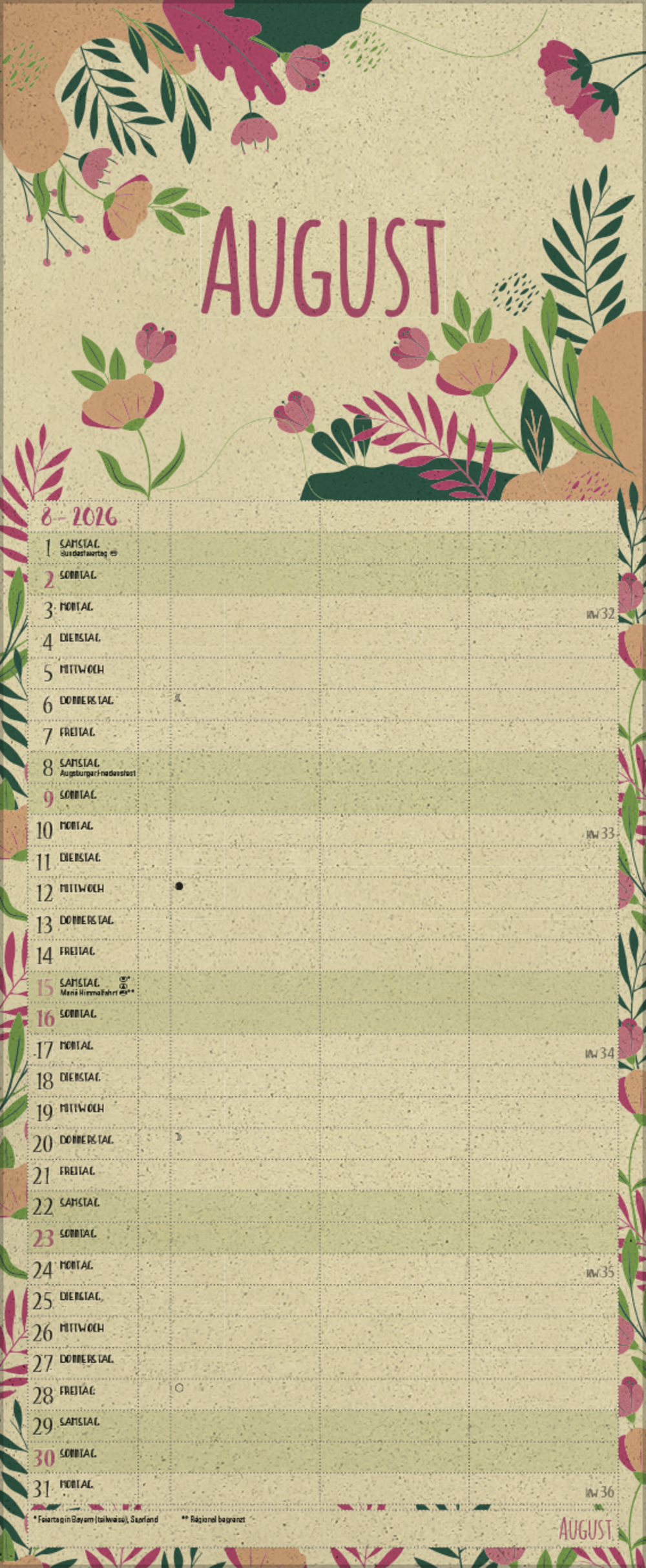 - Praktische Zusatzspalte für Ferien, Müll und weitere Aktivitäten