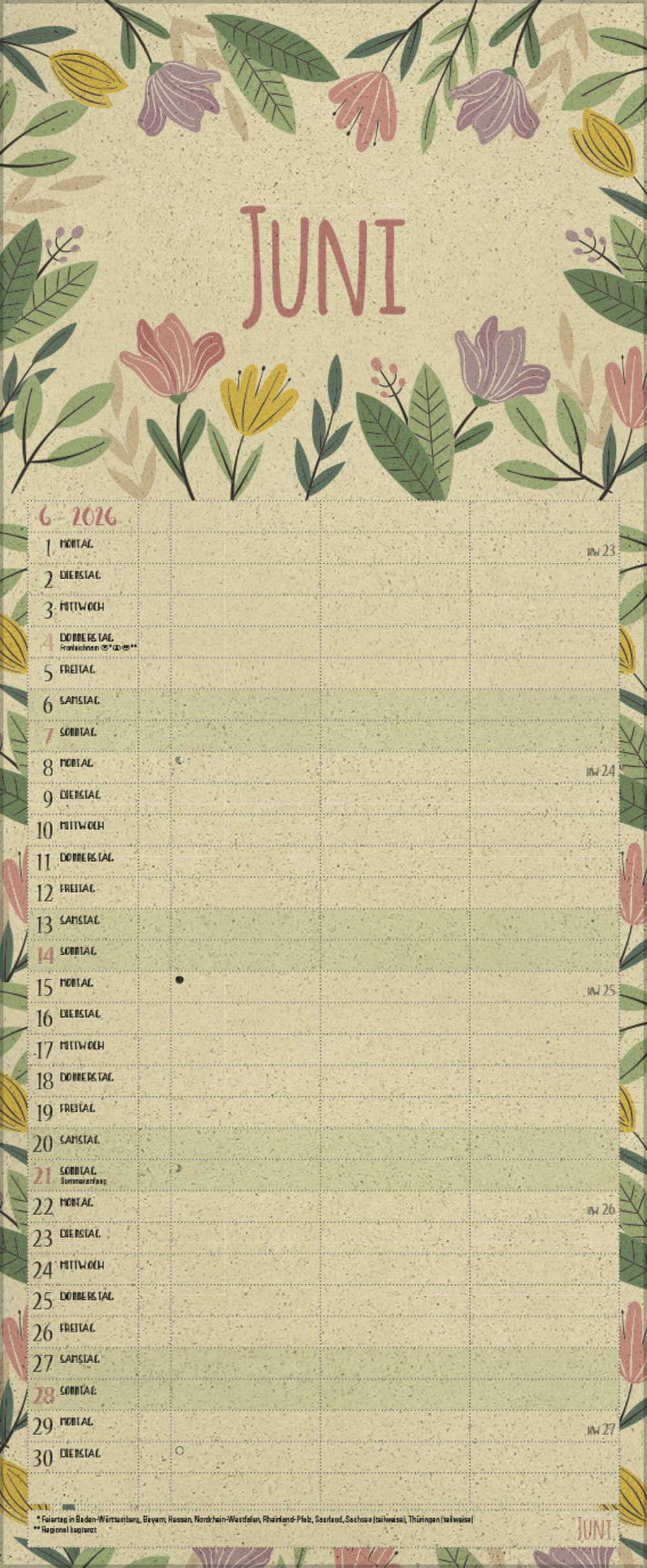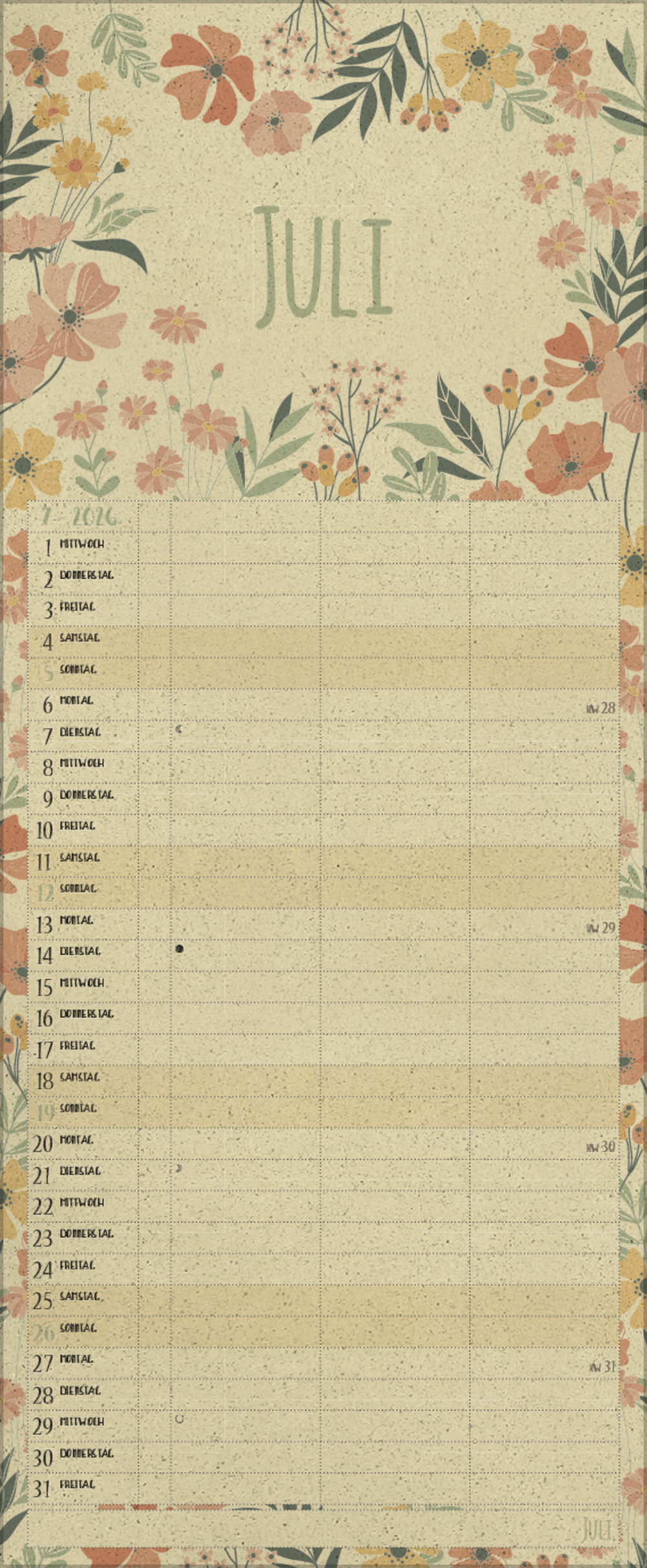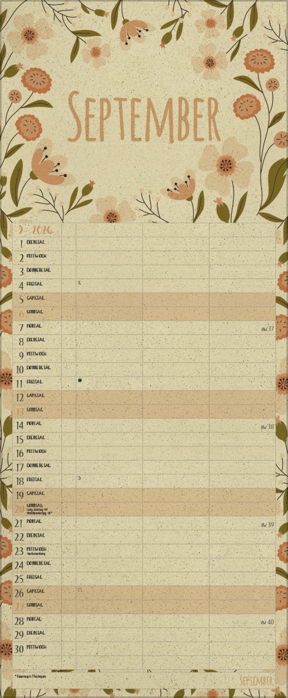 - Praktische Zusatzspalte für Ferien, Müll und weitere Aktivitäten