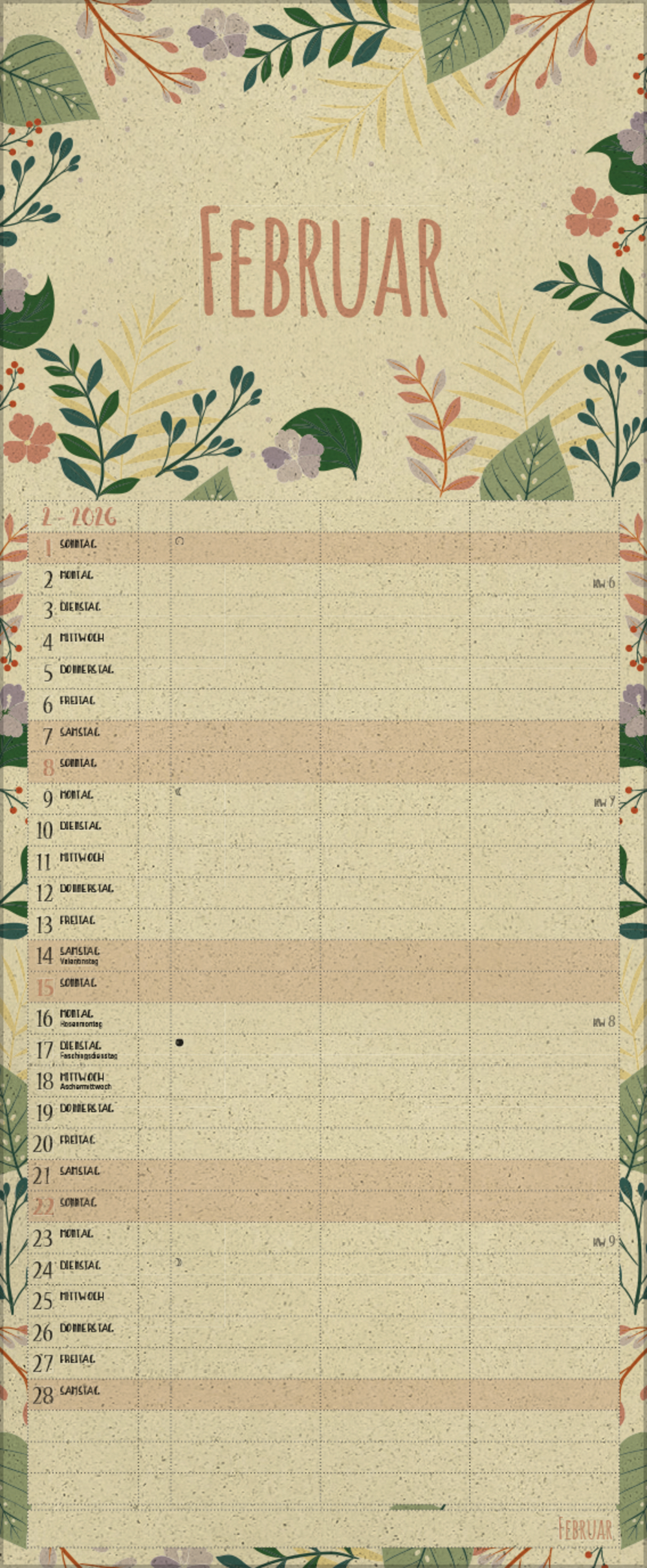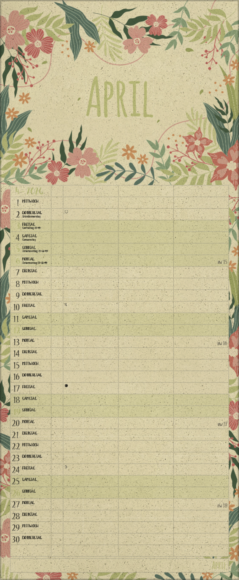 - Terminkalender mit viel Platz für Eintragungen, ohne störende Bilder in den Spalten