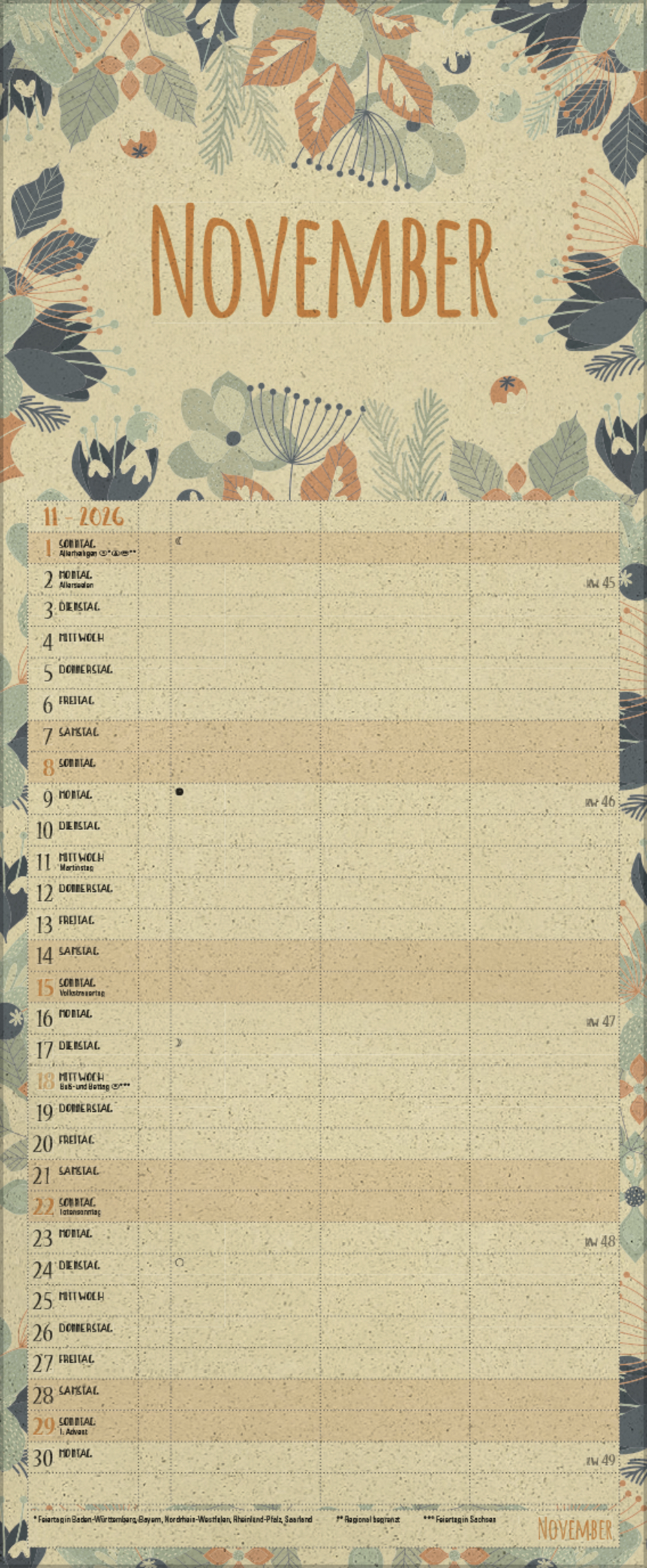 - Deutsches Kalendarium mit regionalen Feiertagen für Deutschland, Österreich und Schweiz