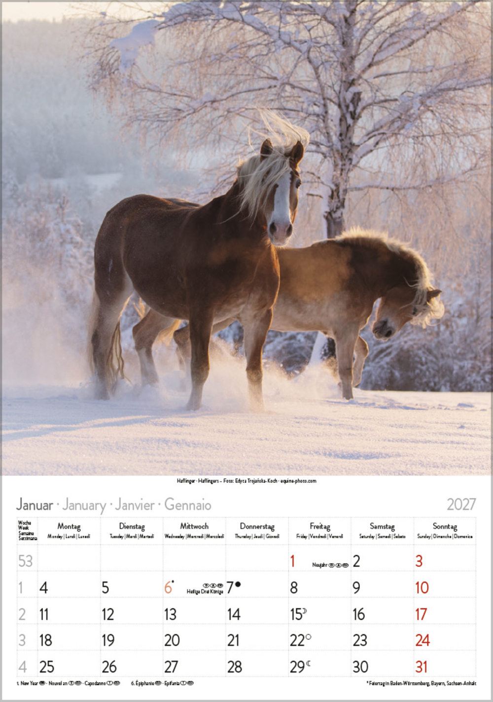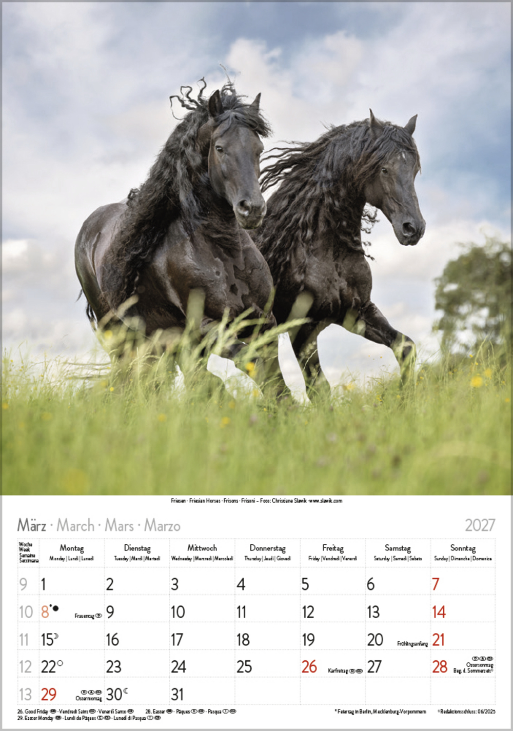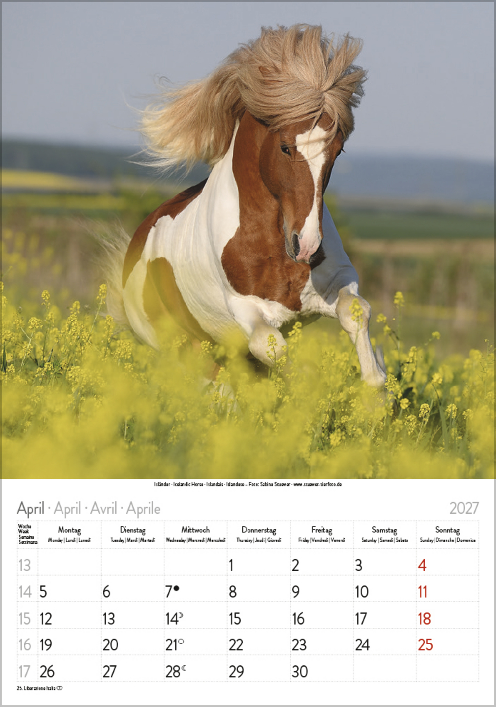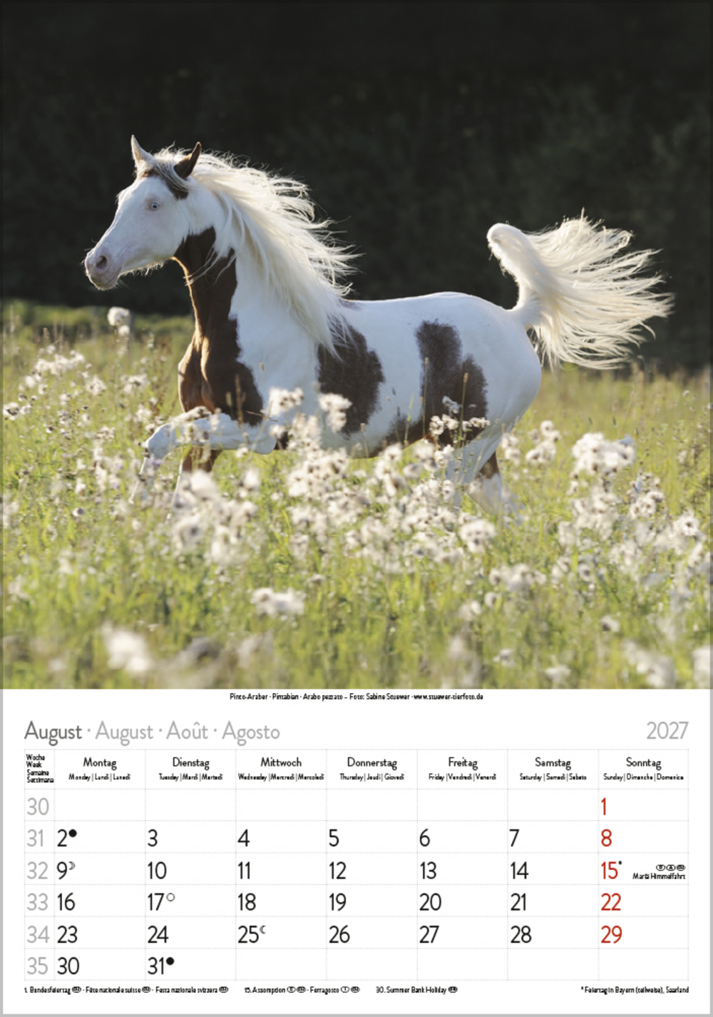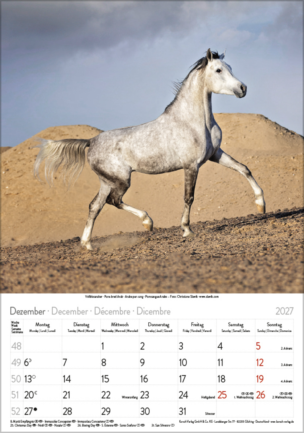 Bekannte Pferdefotografinnen haben für diesen Kalender die edelsten Rassepferde aus vielen Regionen der Erde in einzigartigen Aktionen und Situationen mit ihrer Kamera eingefangen. Eine Hommage an das Pferd als das schönste, edelste und stolzeste Haustier des Menschen.