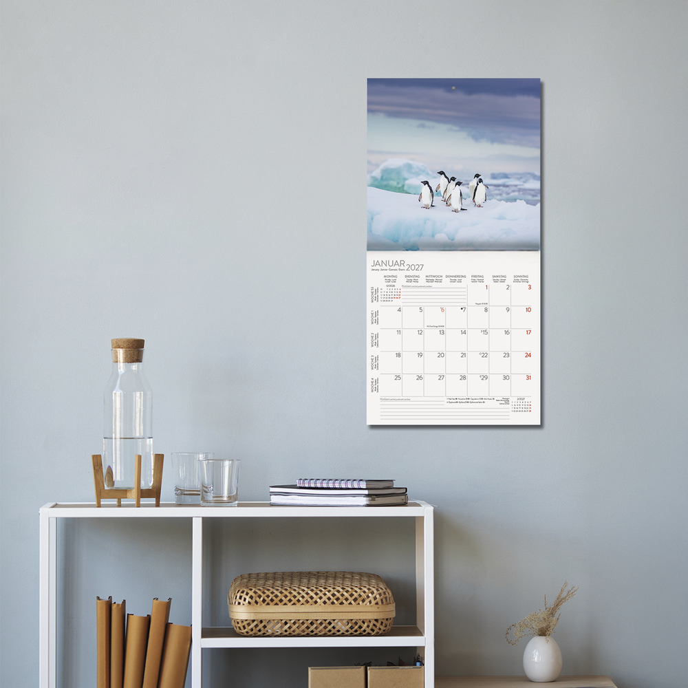 Pinguine sind auf der ganzen Welt wegen ihres drolligen Aussehens und ihrer fast menschlich anmutenden Körpersprache beliebt. Niedlich und ein wenig tollpatschig watscheln die flugunfähigen Vögel, die jedoch hervorragende Schwimmer und Taucher sind, durch ihre Welt. 12 witzige Aufnahmen hinreißender Pinguine zeigt dieser praktische Kalender. Mit viel Platz für Notizen und einer Übersicht mit Ferienterminen.