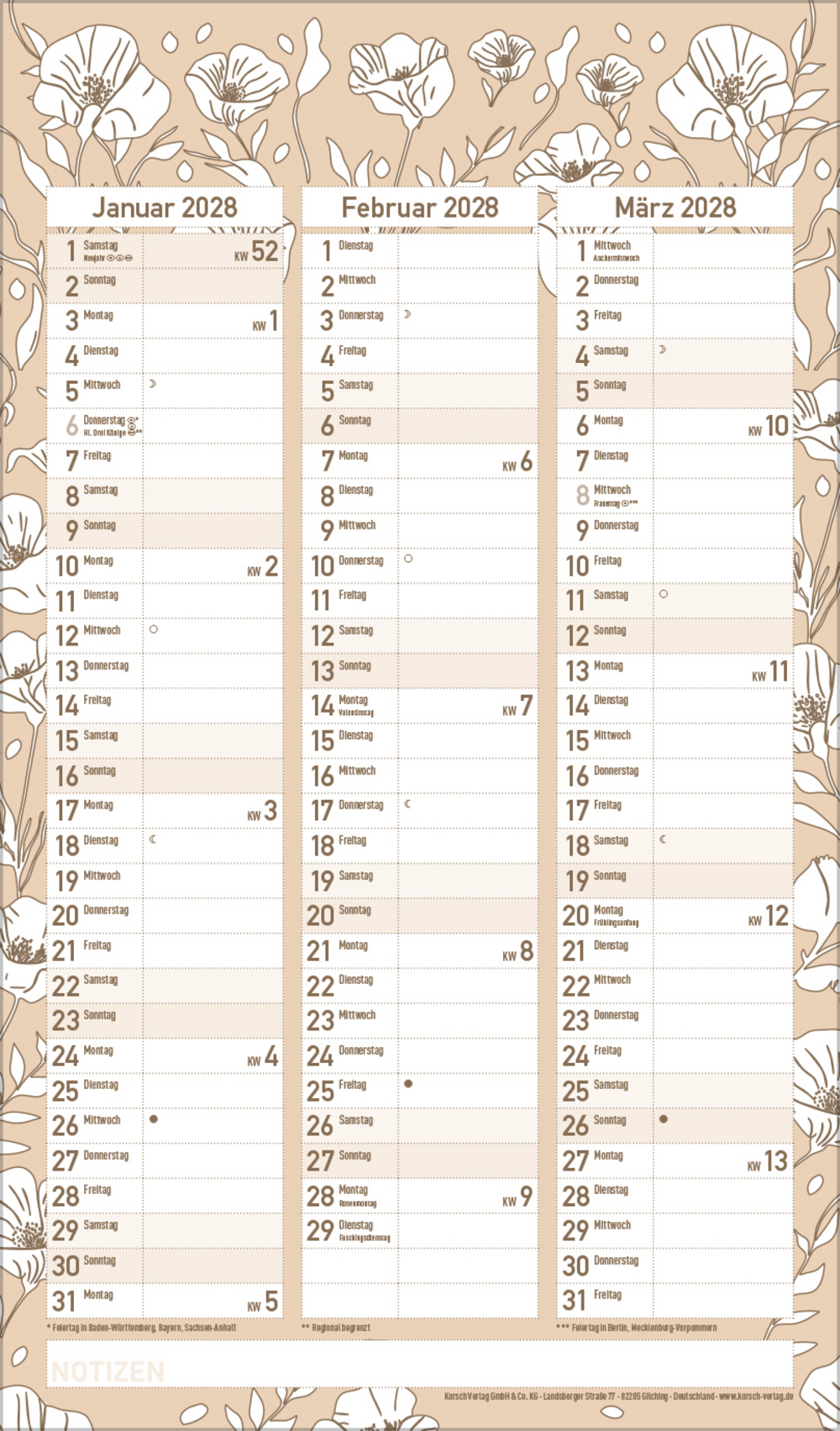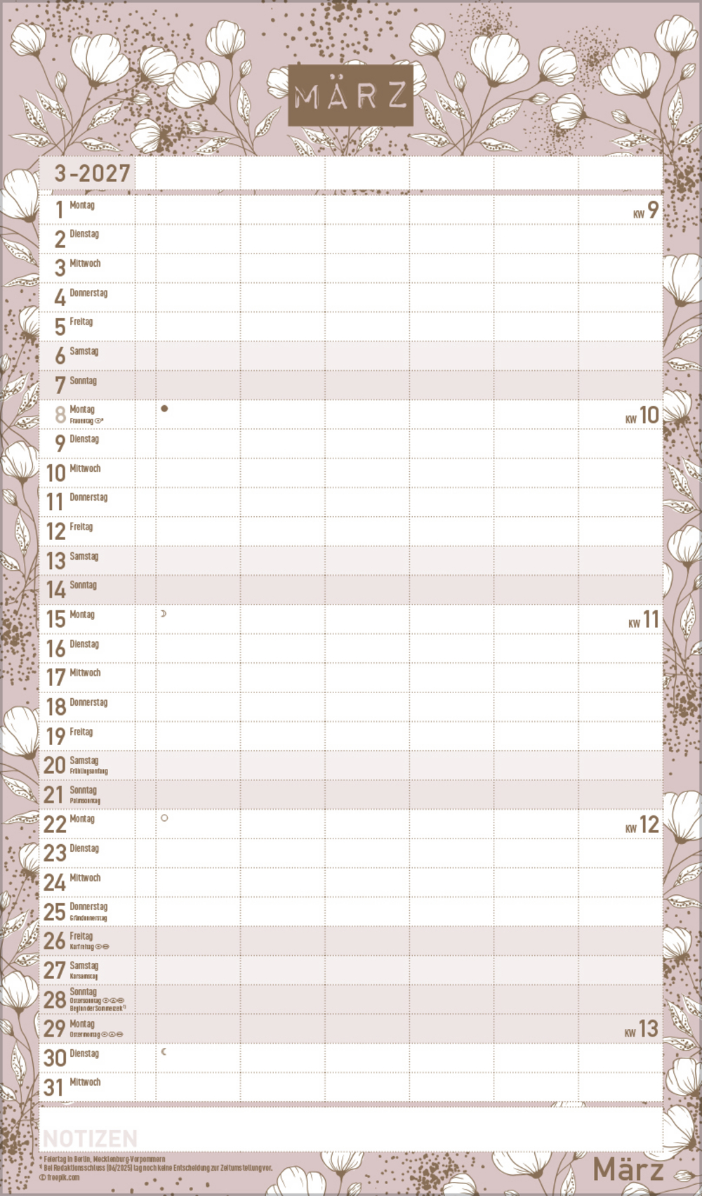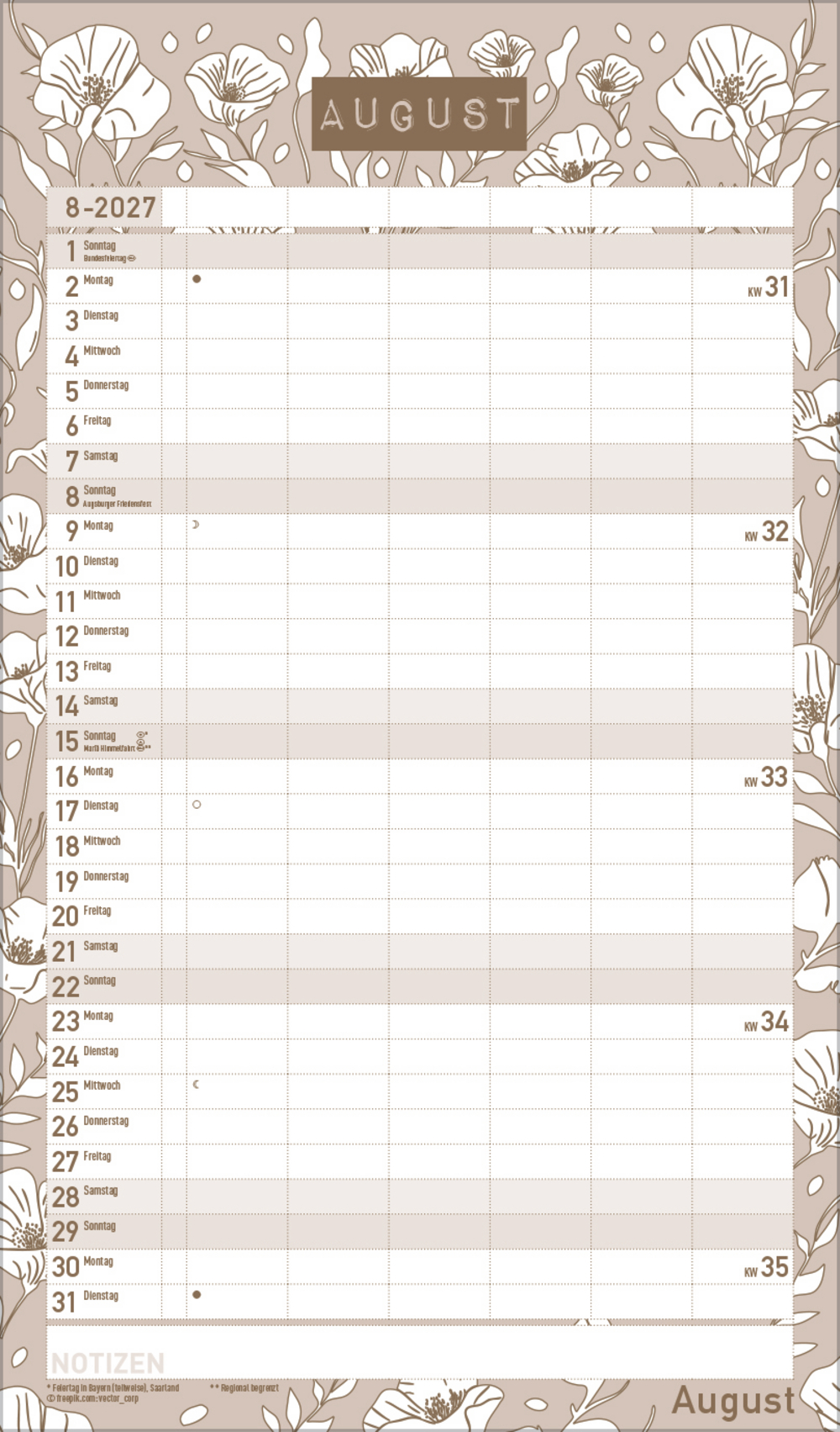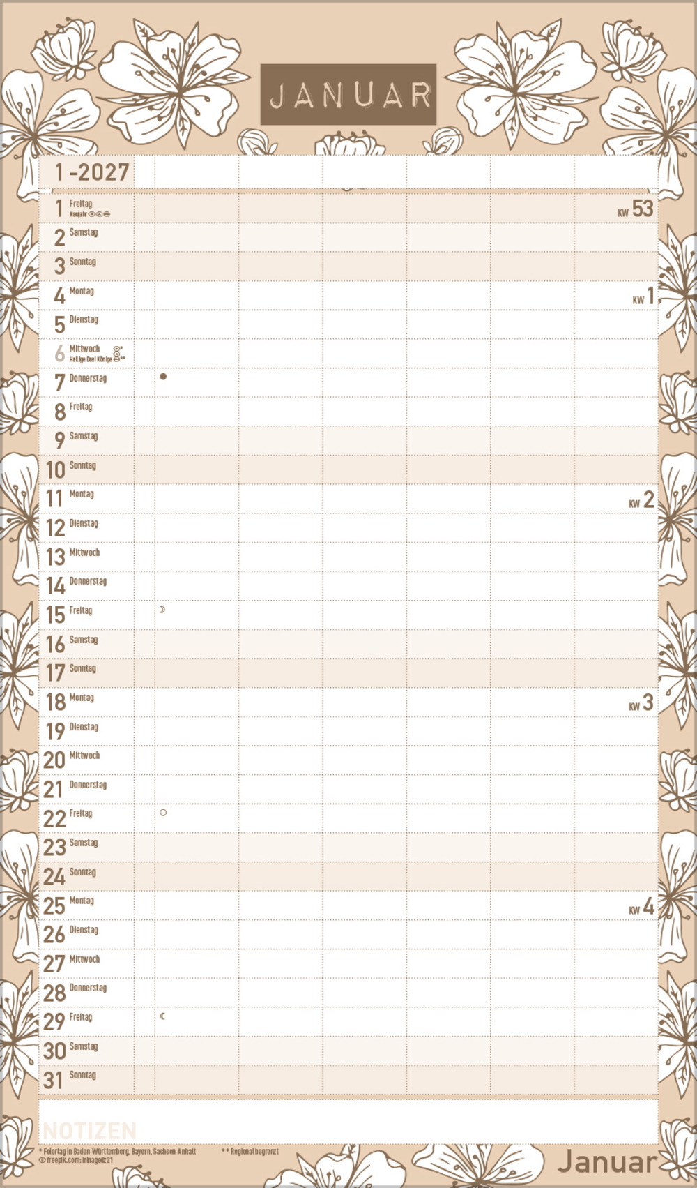 - Terminkalender mit viel Platz für Eintragungen, ohne störende Bilder in den Spalten