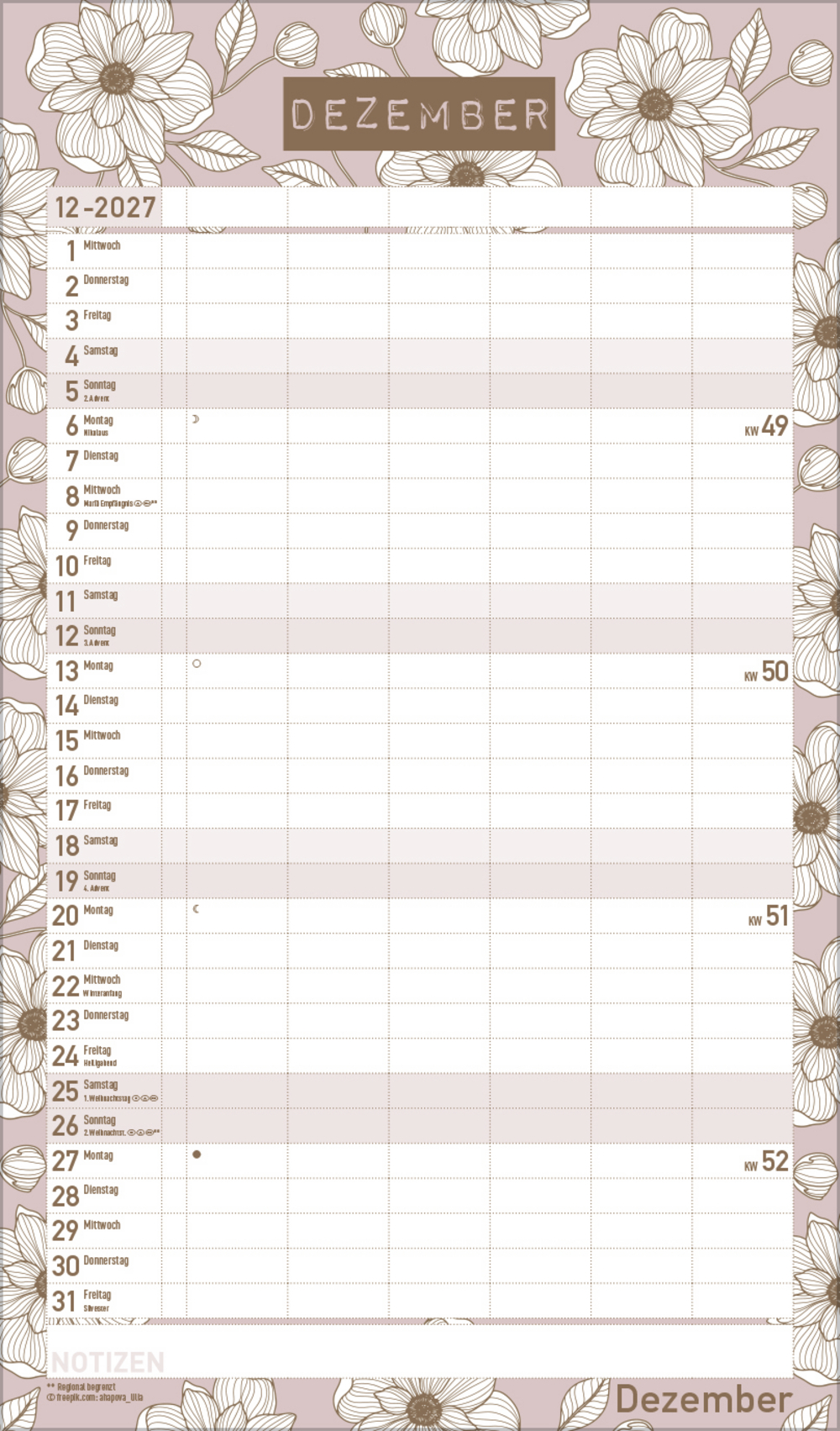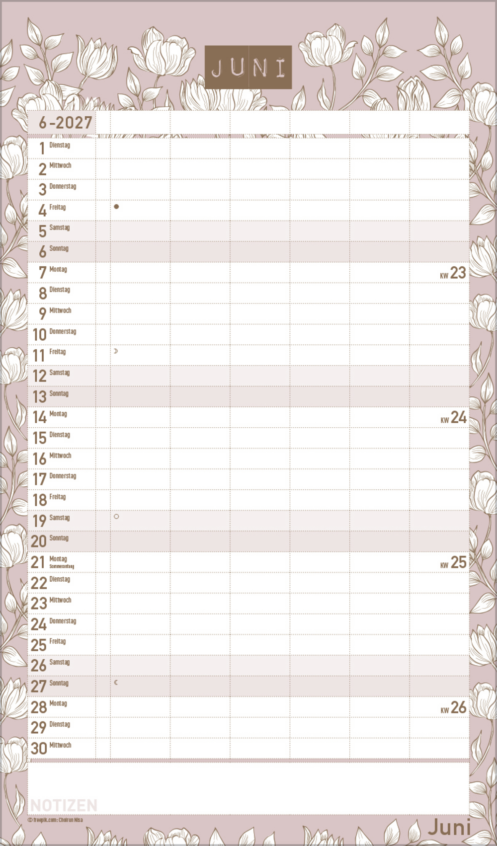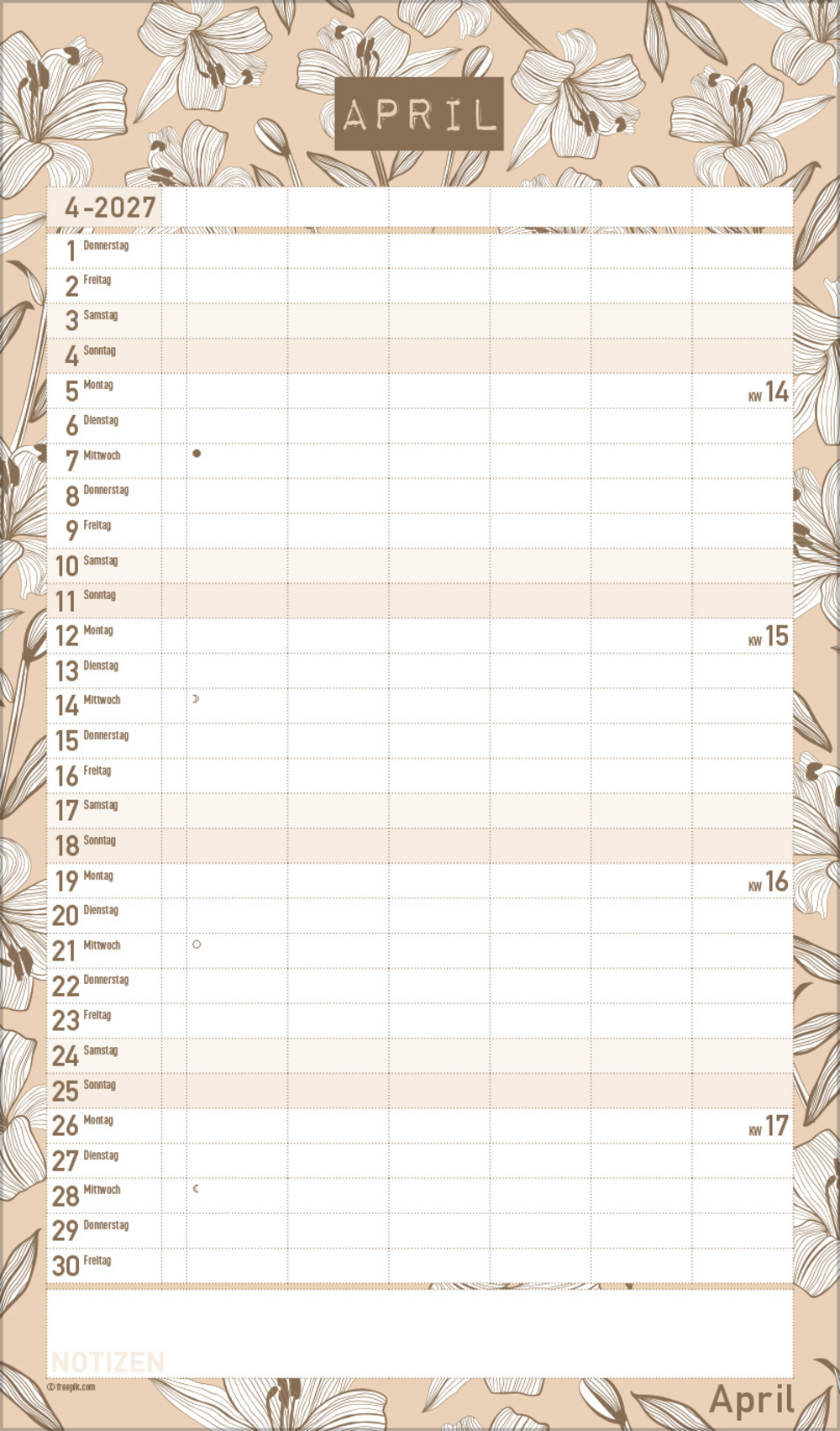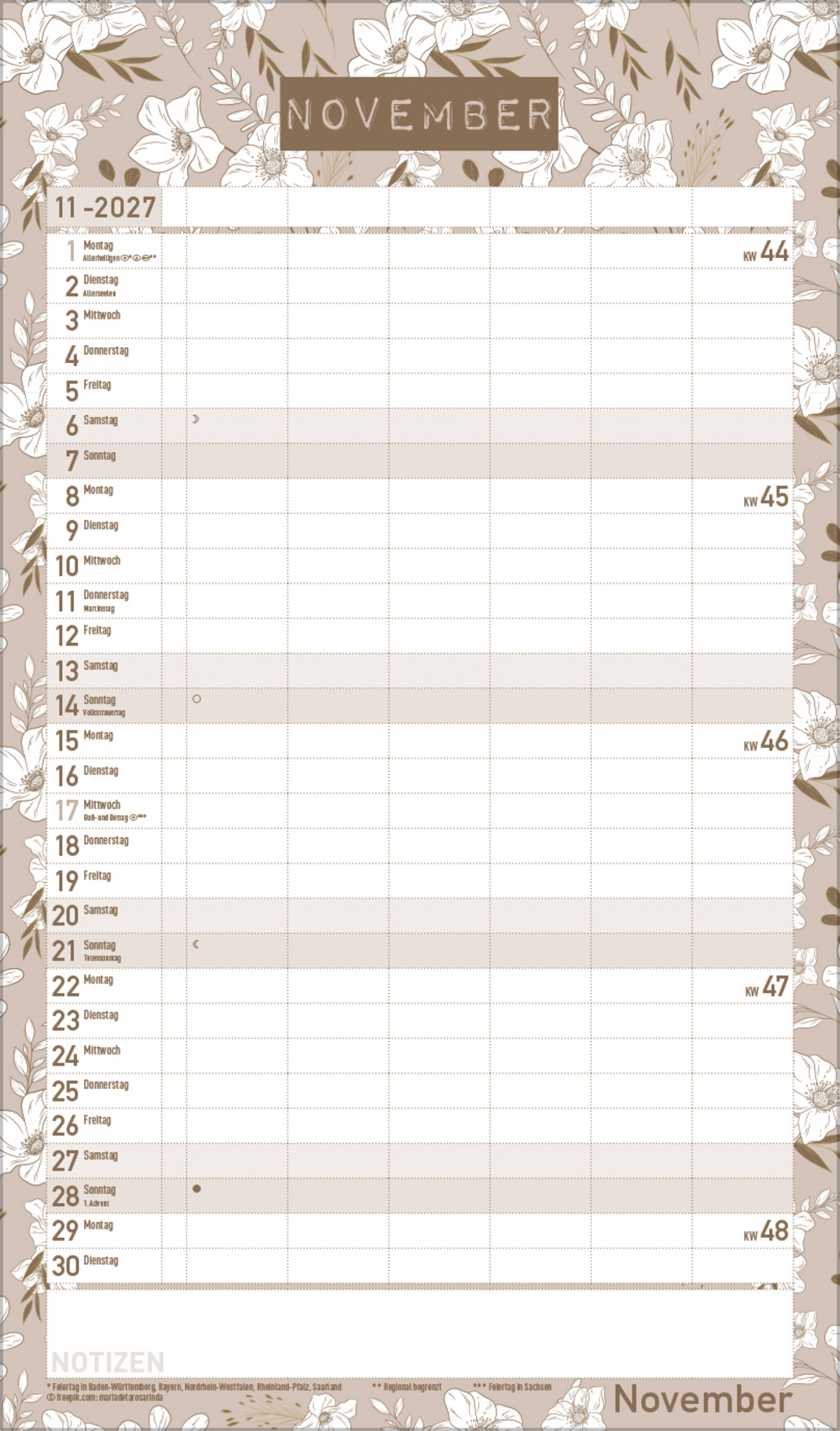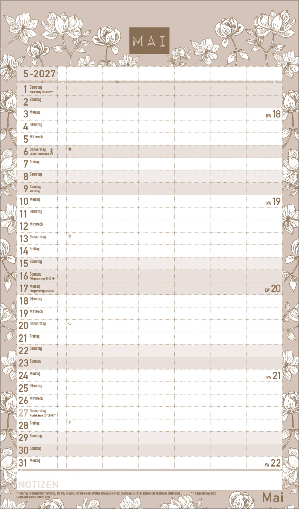 - Terminkalender mit viel Platz für Eintragungen, ohne störende Bilder in den Spalten