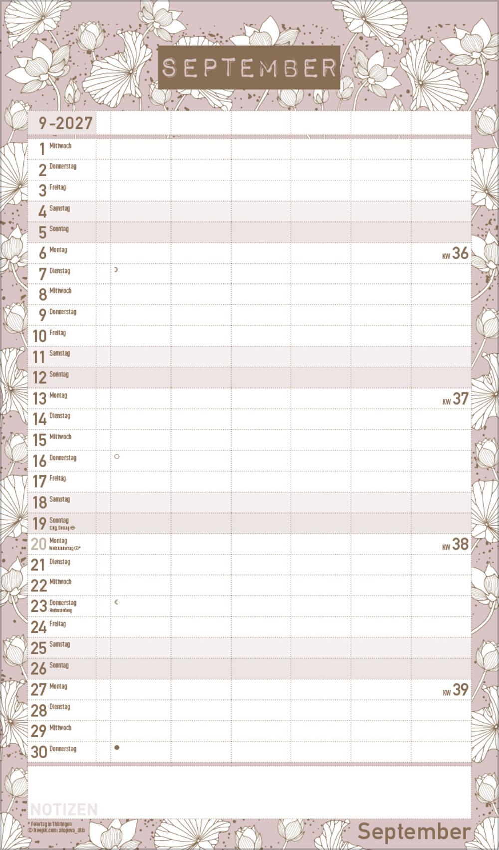 - Praktische Zusatzspalte für Ferien, Müll und weitere Aktivitäten