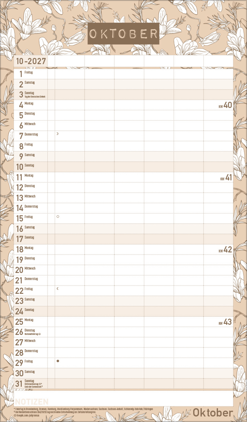 - Übersichtlicher Familienplaner mit 6 Spalten; sehr stabile Rückwand; 27 x 46 cm