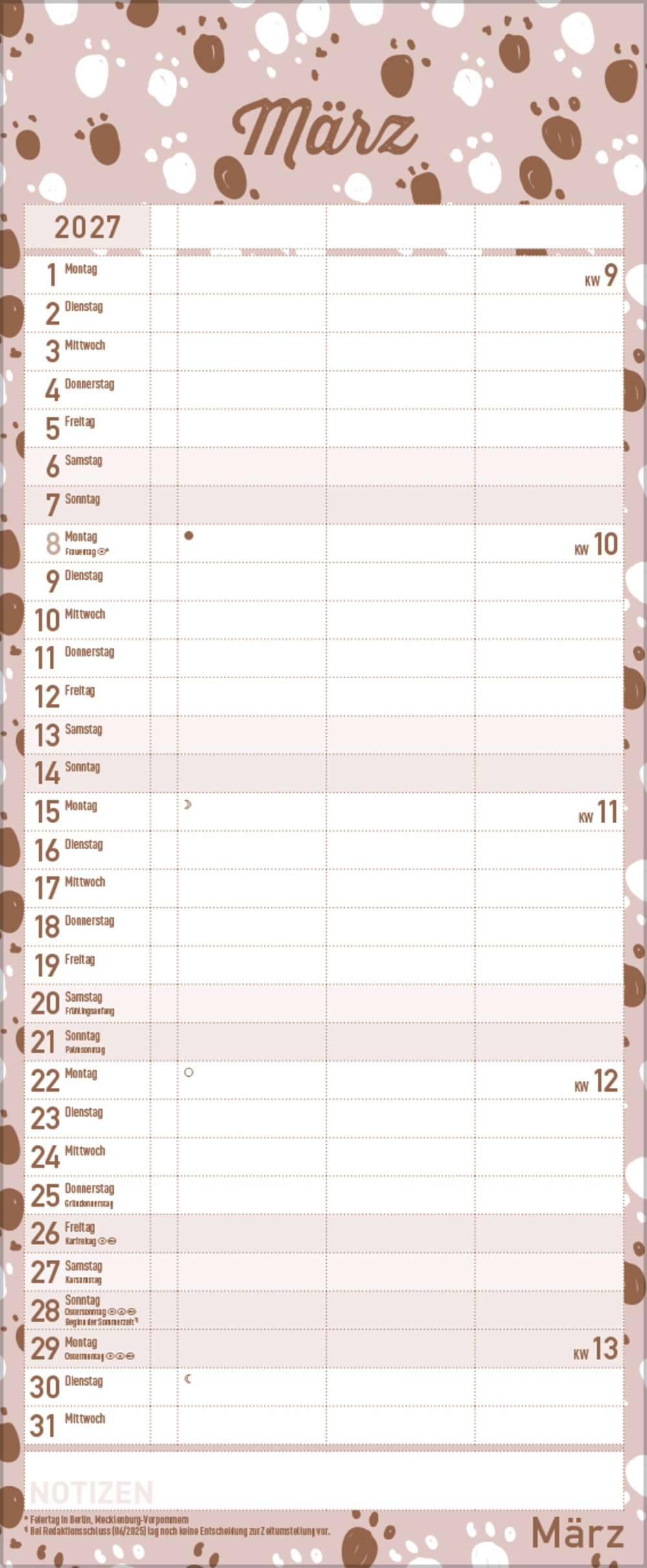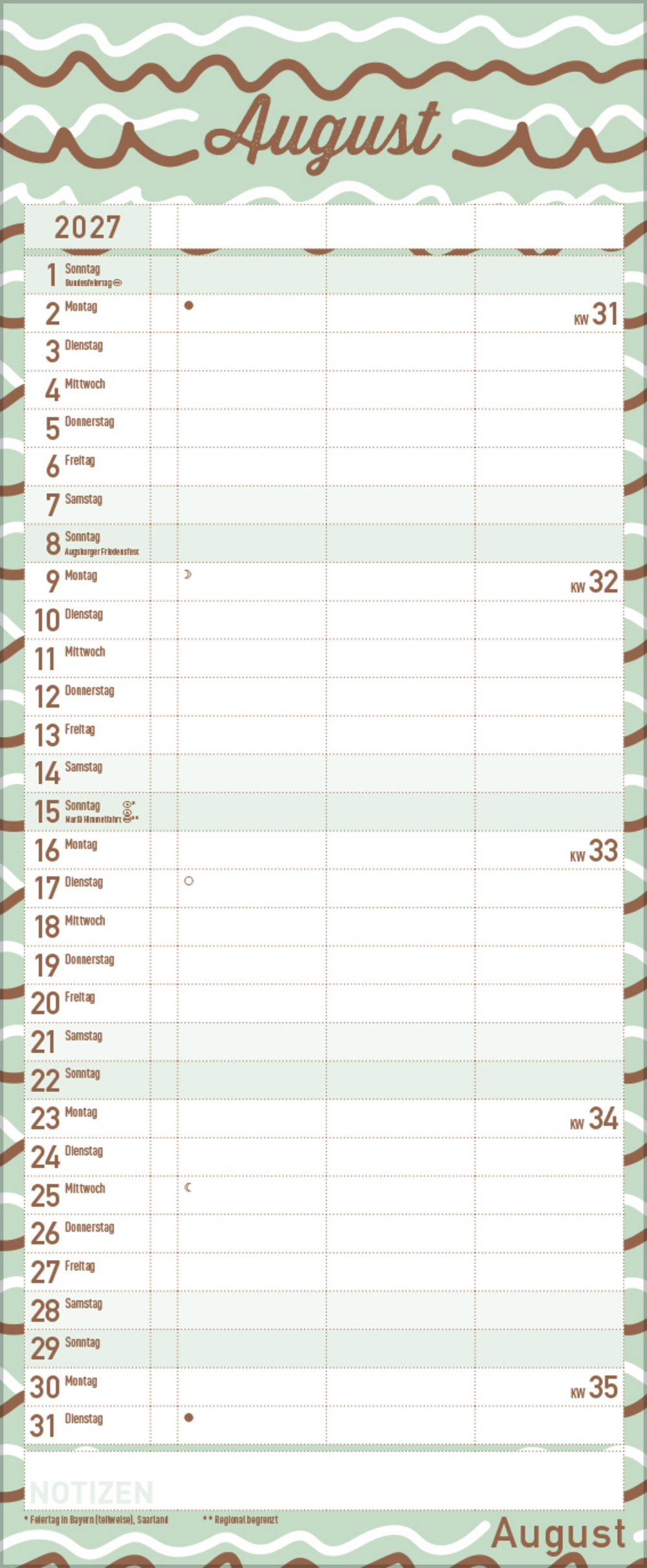 - Praktische Zusatzspalte für Ferien, Müll und weitere Aktivitäten
