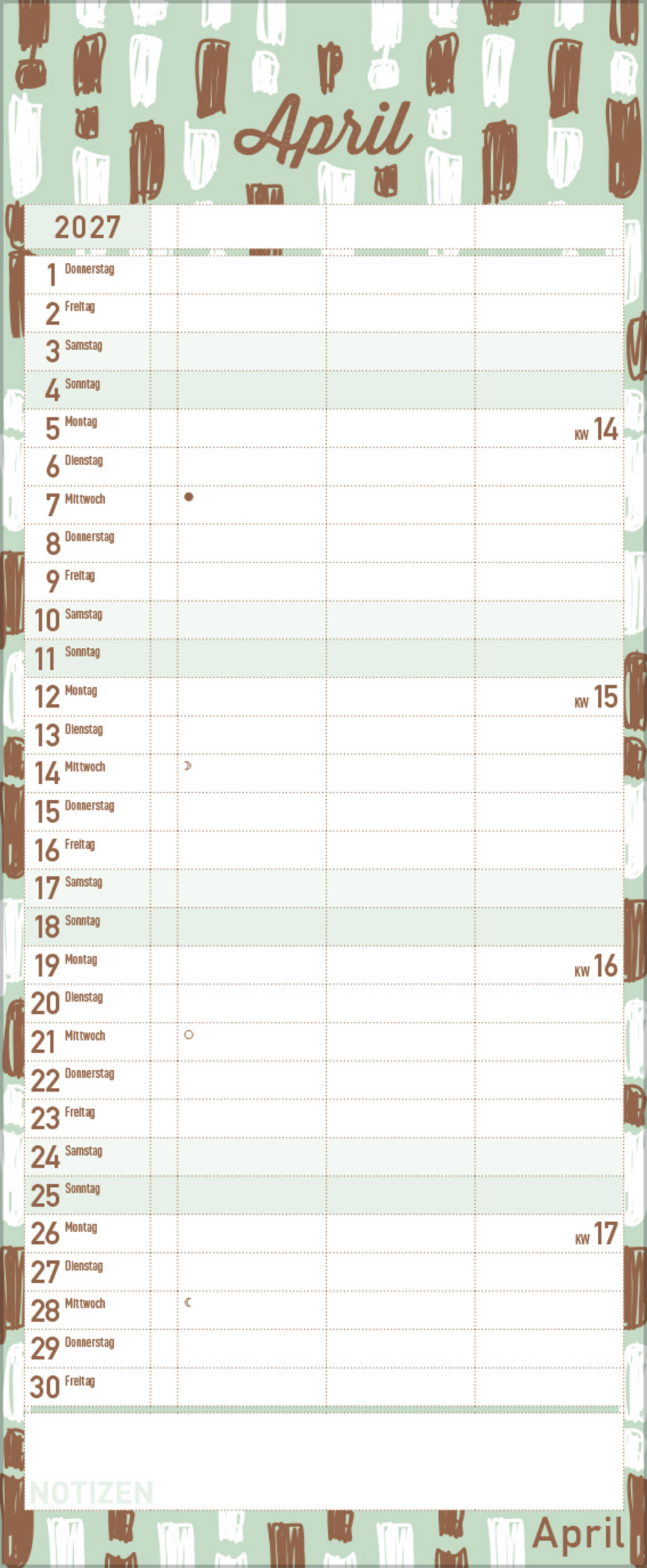 - Terminkalender mit viel Platz für Eintragungen, ohne störende Bilder in den Spalten