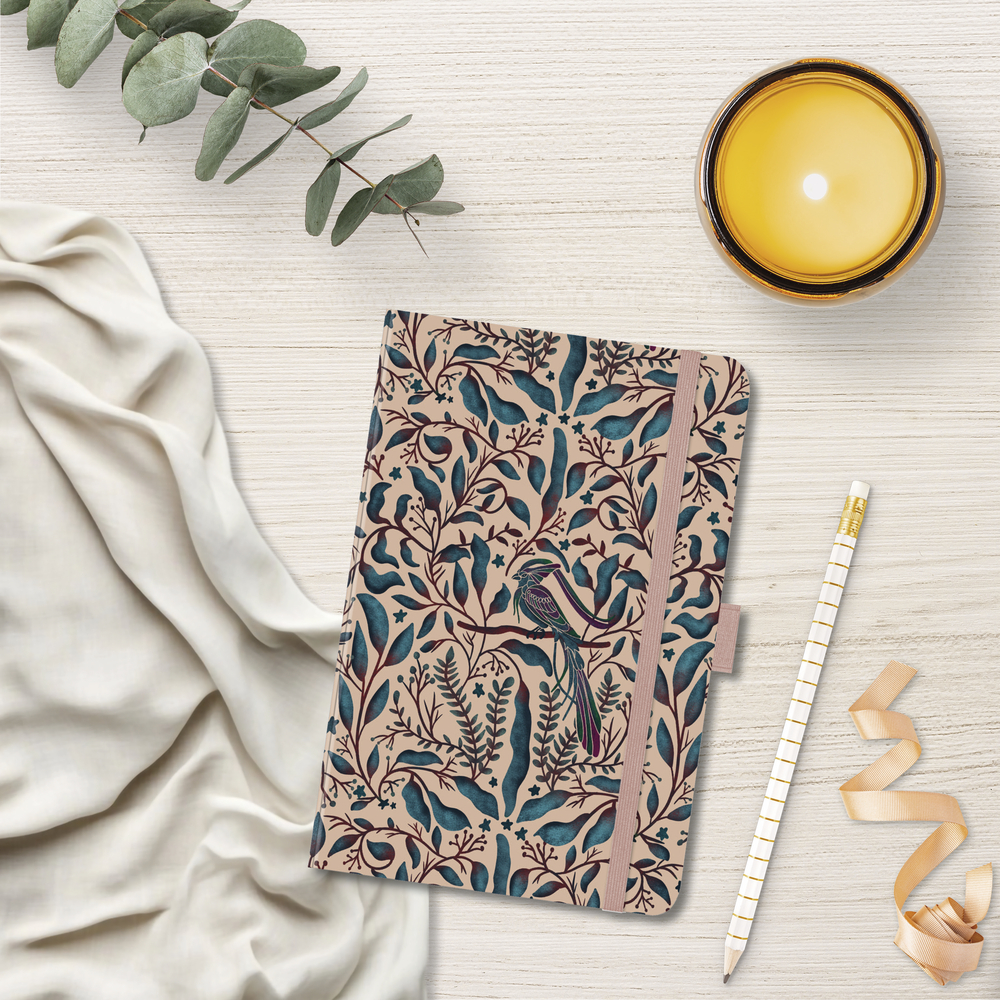 - Stifthalter und Lesebändchen sowie praktische Zetteltasche; Anzeige der Mondphasen
