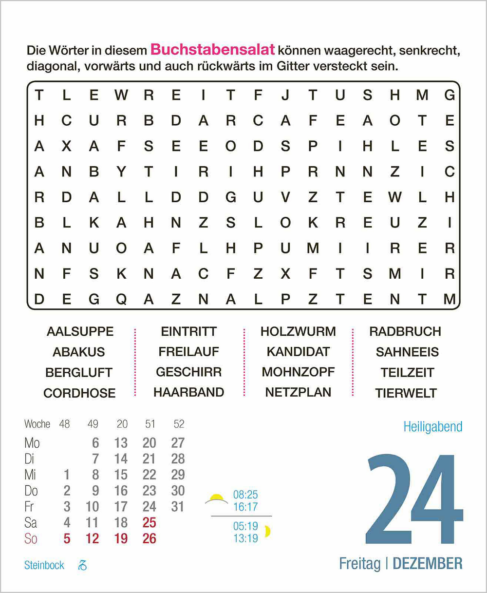 Dieser Kalender ist der perfekte Jahresbegleiter für aktive und wissbegierige Rentner. Knifflige Rätsel machen jeden Tag zu einem neuen Abenteuer. Da hat Langeweile keine Chance!