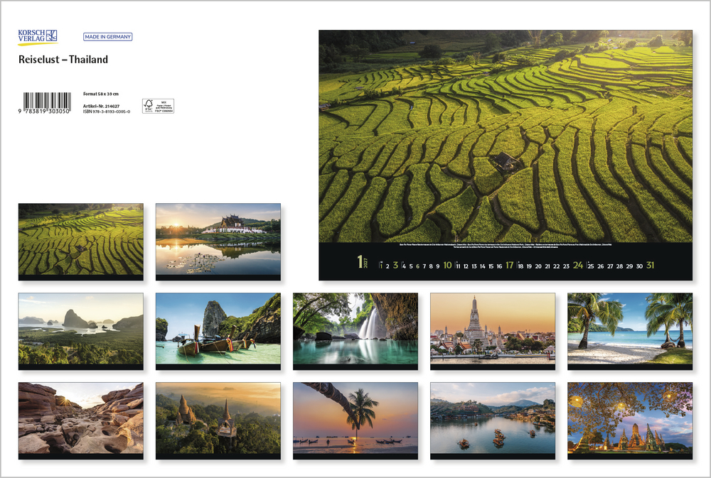 Reiselust ist der perfekte Kalender für all jene, die von fernen Ländern träumen und Freude am Entdecken neuer Kulturen und Landschaften haben. Jedes Jahr zeigt dieser Kalender ein neues Trendziel und wird damit zu einem abwechslungsreichen Wandschmuck, der durch beeindruckende Fotografien dazu einlädt, die Schönheit und Vielfalt des jeweiligen Landes zu entdecken.