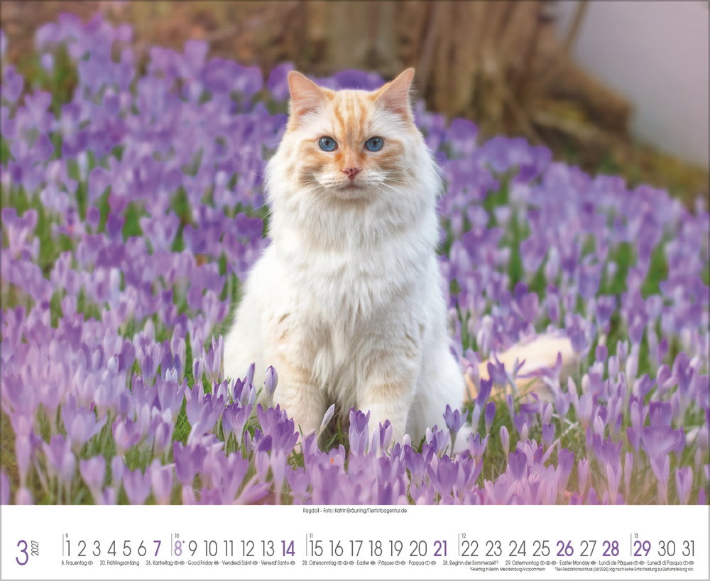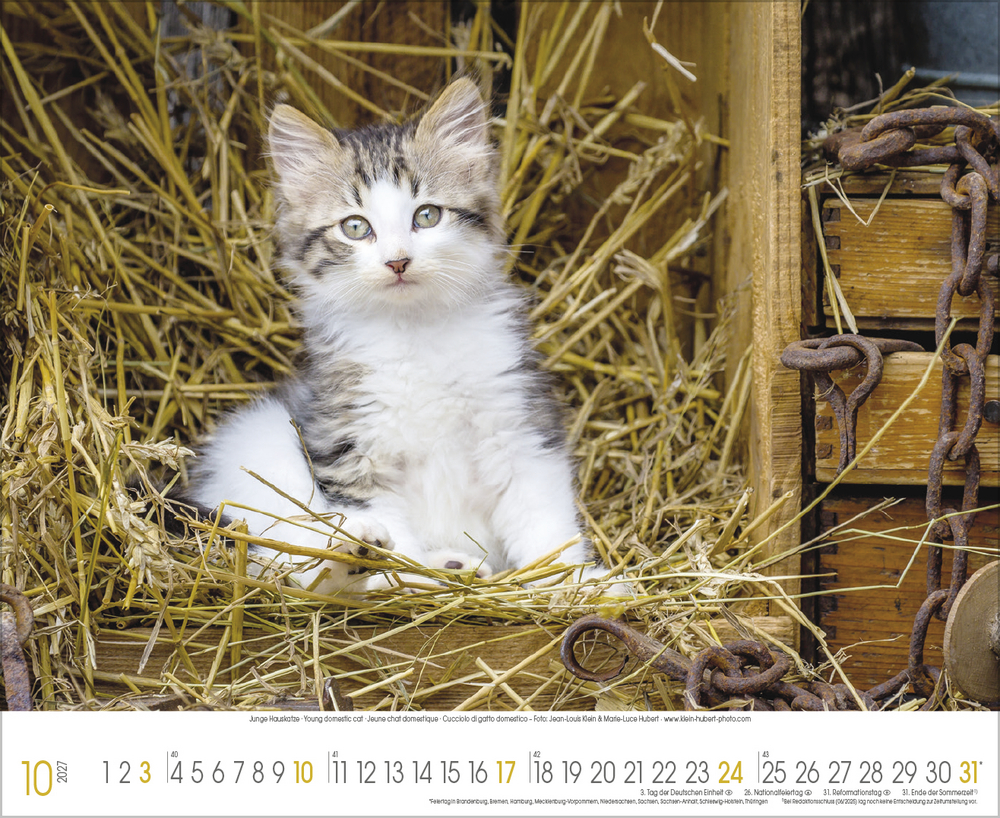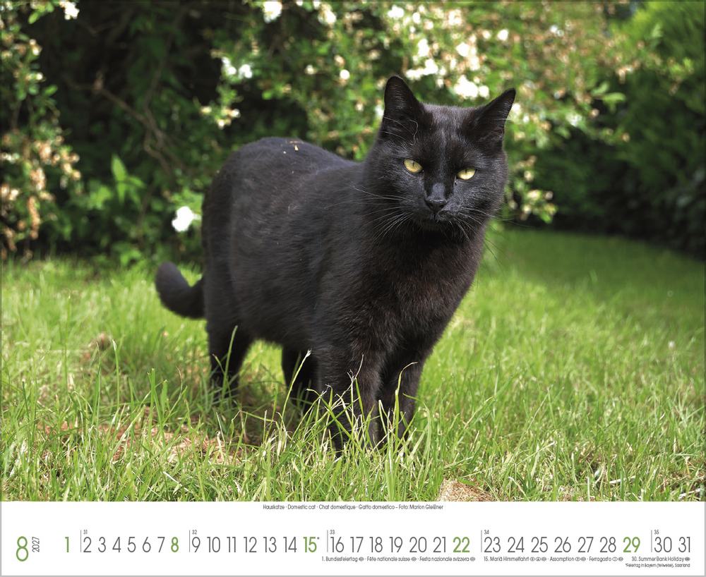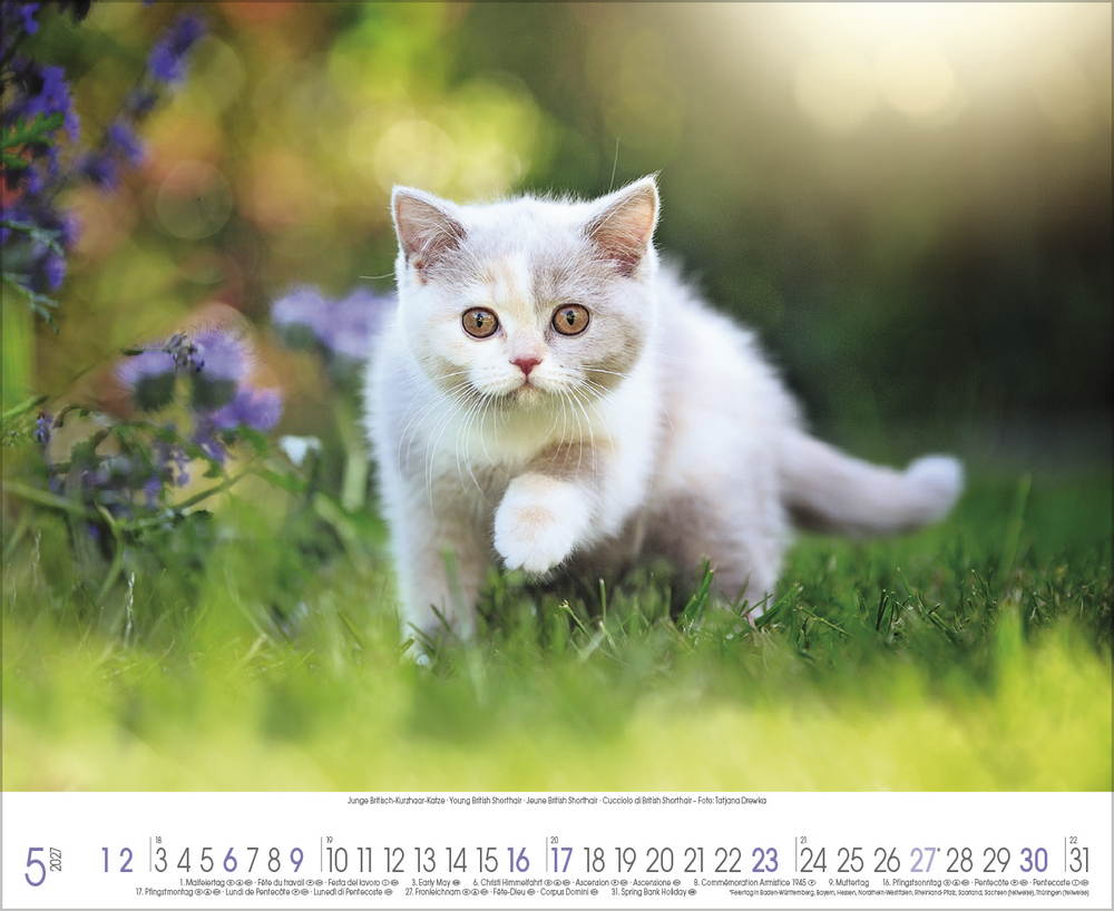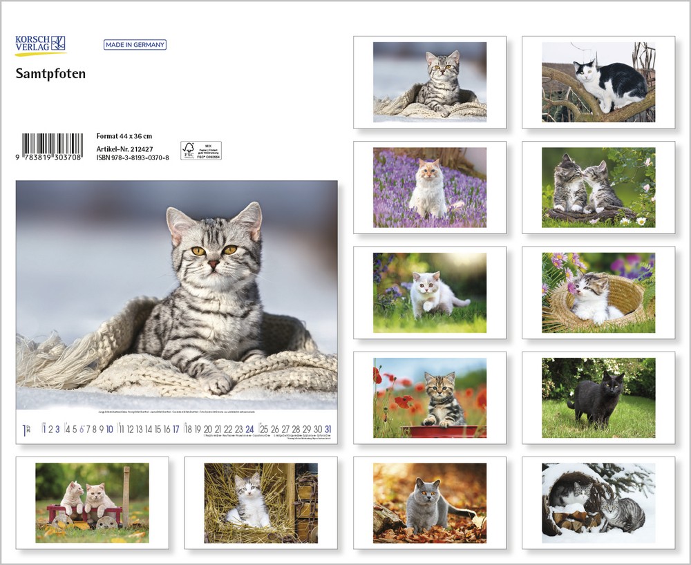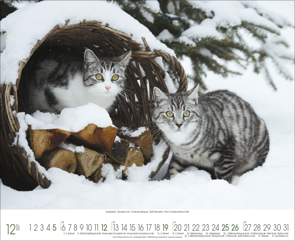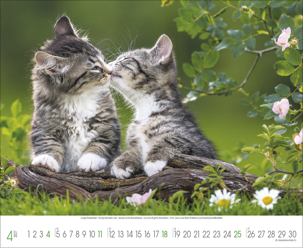 Katzen, Stubentiger mit Charakter, sanften Pfoten und eigenem Kopf, sind die beliebtesten Haustiere überhaupt. Sie faszinieren uns mit süßen Posen, Anschmiegsamkeit und leichtfüßiger Eleganz. All dies spiegelt dieser wunderschöne große Kalender perfekt wider.