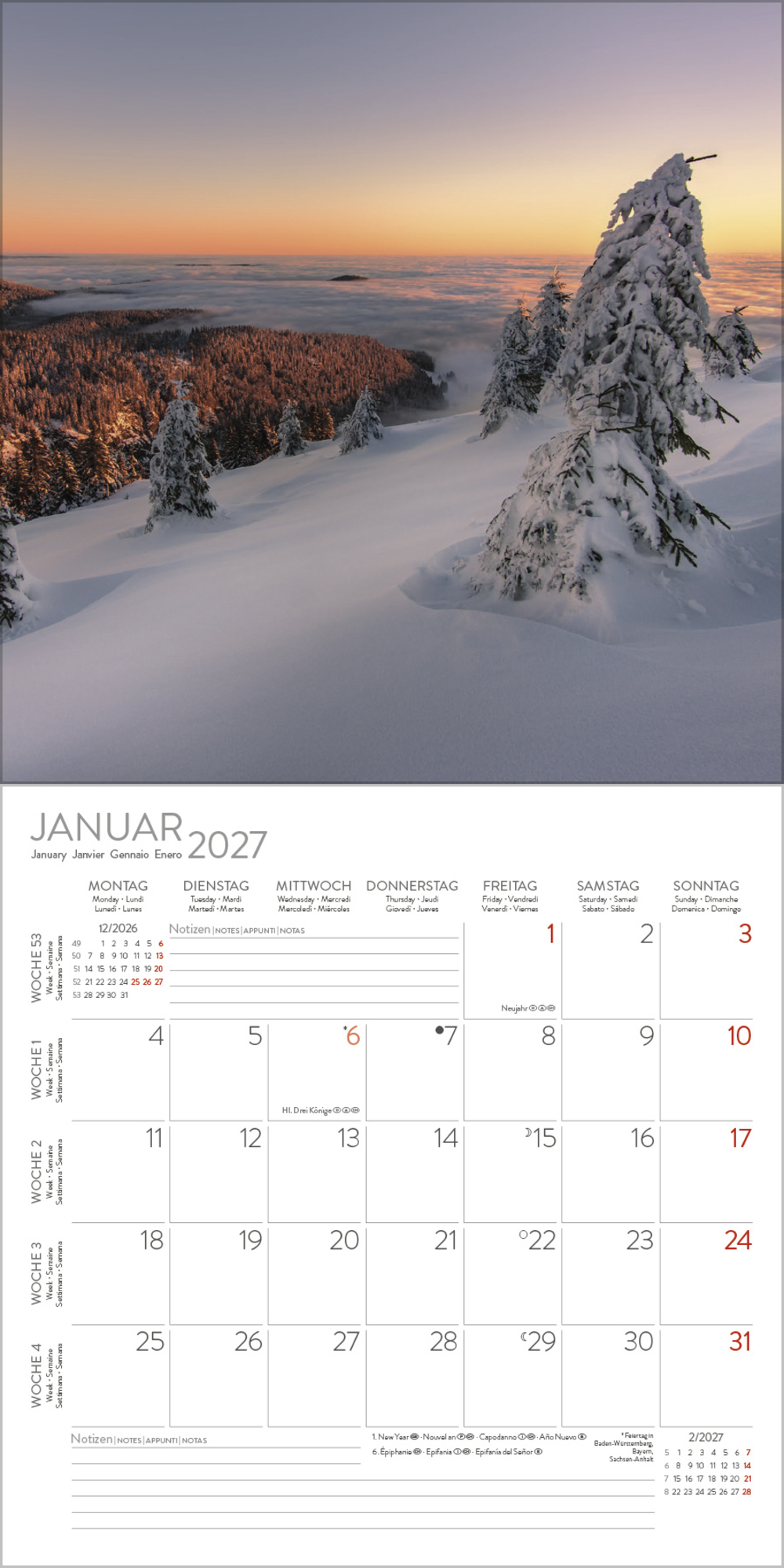 Dieser Kalender ist eine Streifzug zu den schönsten Orten und Traditionen der beliebten Urlaubsregion Schwarzwald.