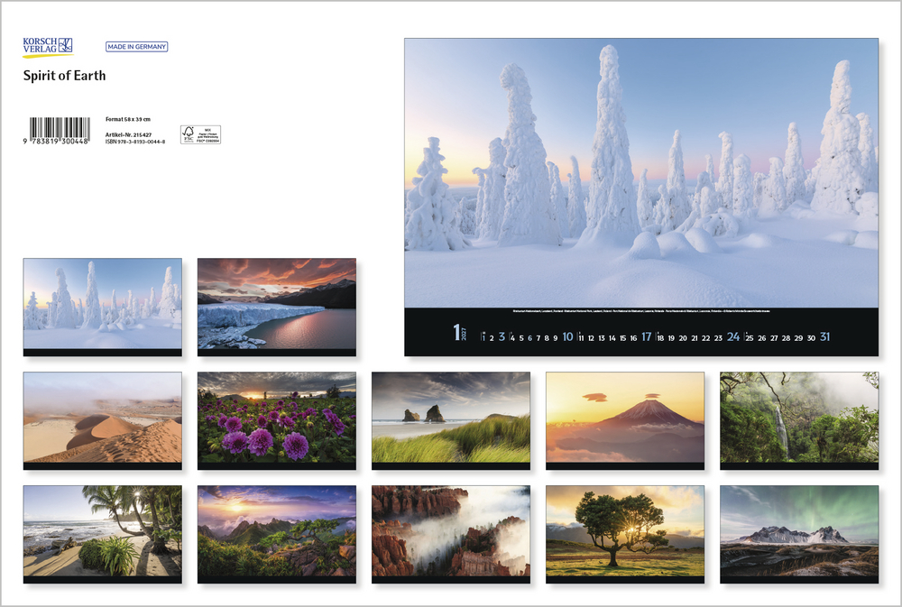 Der Geist der Erde: so tiefgründig und vielfältig wie ihre Landschaften. Der Kalender „Spirit of Earth“ fängt das Wesen unseres Planeten in spektakulären Panoramafotografien gekonnt ein. Ein Wandschmuck der Superlative für alle Naturliebhaber.