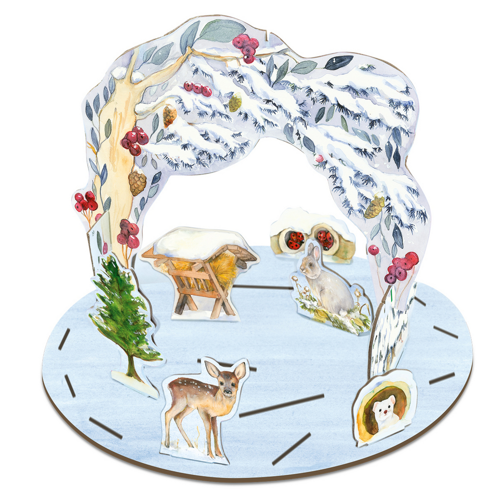 - Adventskalender mit winterlicher Bühne zum Aufstellen und 24 Steckfiguren