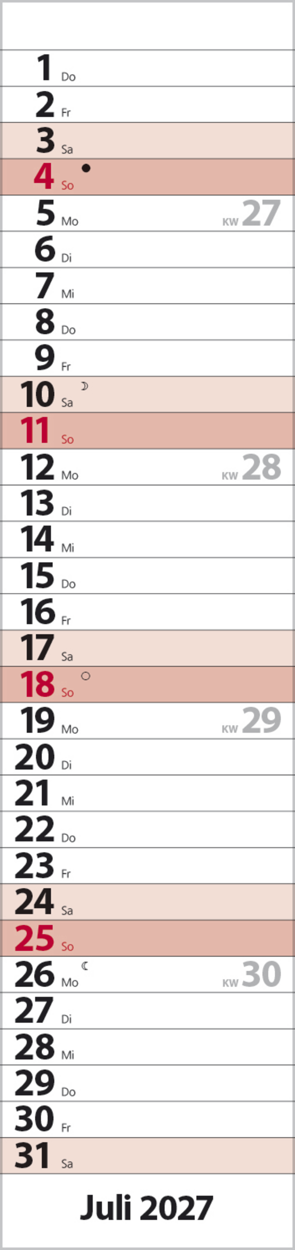 • Format: 11,8 x 50 cm; schmaler Wandkalender mit viel Platz für Termine