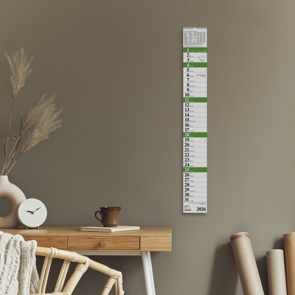 • Format: 11,4 x 89 cm; schmaler Wandkalender mit viel Platz für Termine