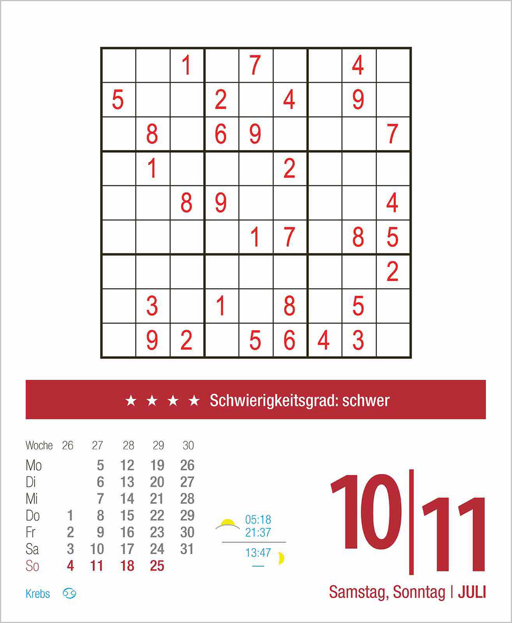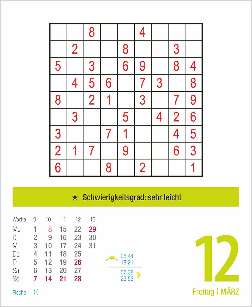 Über 300 spannende Sudoku-Rätsel hält dieser Tageskalender für alle sudokusüchtigen Zahlenjongleure bereit.