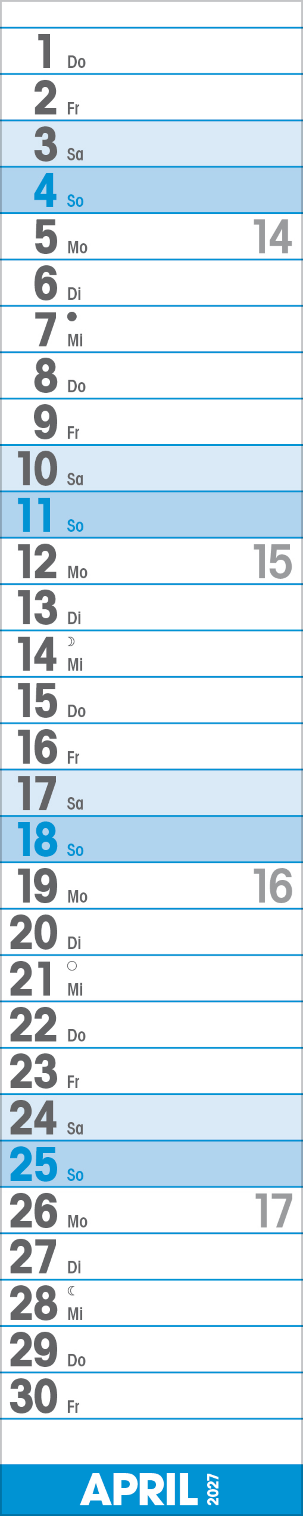 • Format: 17 x 85 cm; schmaler Wandkalender mit viel Platz für Termine
