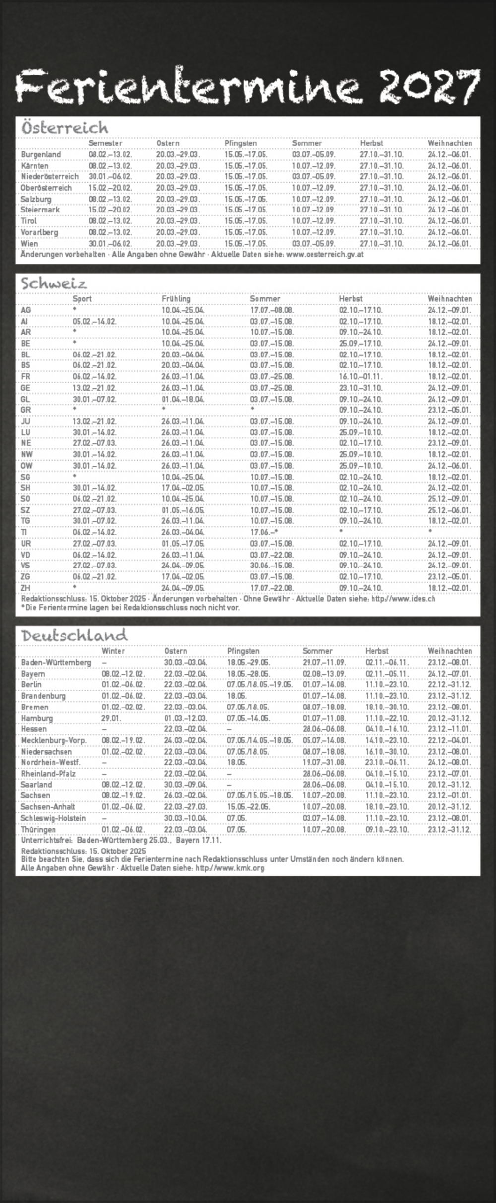 - Deutsches Kalendarium mit regionalen Feiertagen für D, A und CH