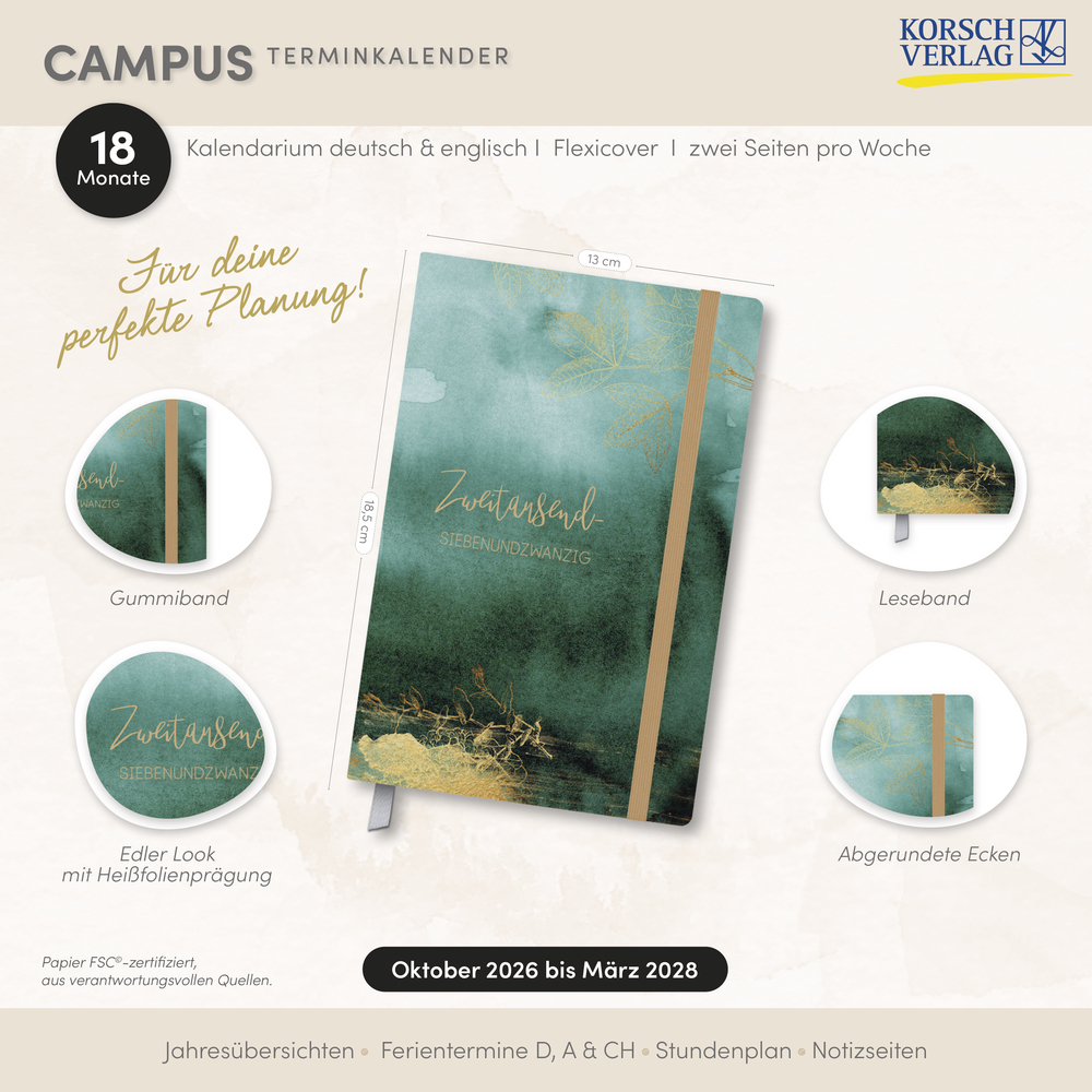 Terminkalender Campus Smaragd 18 Monate 2027/2028