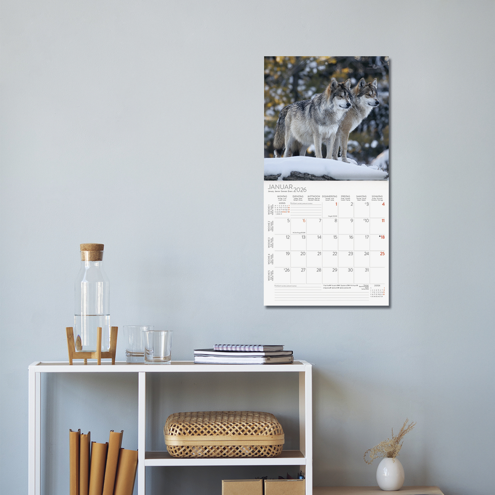 - Jede Kalenderseite mit großem Bild und viel Platz im Kalendarium für Notizen und Termine