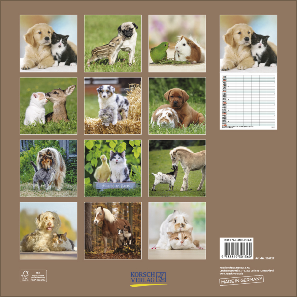Tierische Freunde sind die Hauptdarsteller in diesem praktischen Familienplaner, der Groß und Klein gleichermaßen begeistert.