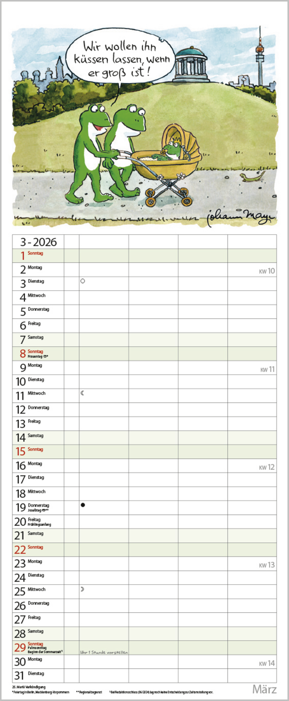 - Jeden Monat ein lustiger Cartoon über den Spalten. Ohne störende Bilder in den Spalten