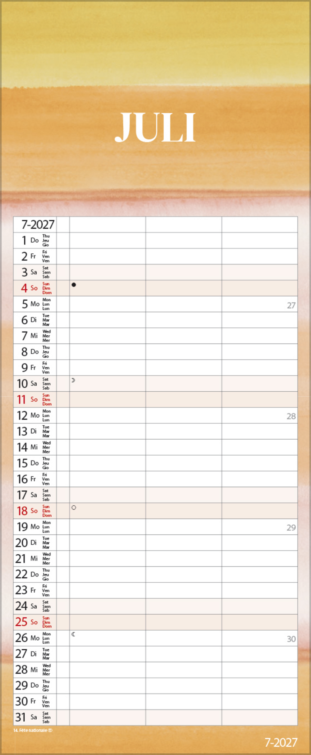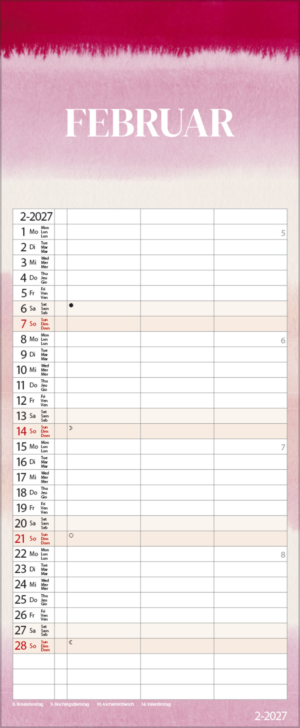 • Übersichtlicher Familienplaner, 4 große Spalten; stabile Rückwand; Format: 19 x 46 cm