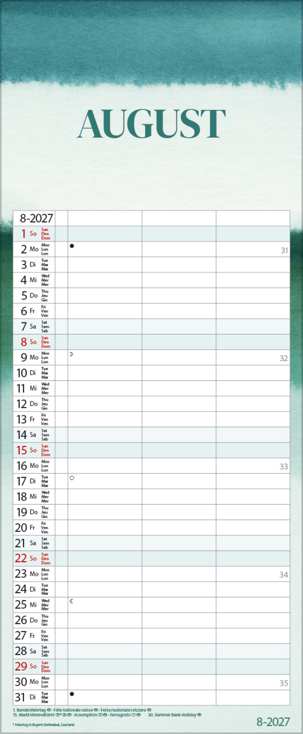 • Viel Platz für Eintragungen, ohne störende Bilder in den Spalten