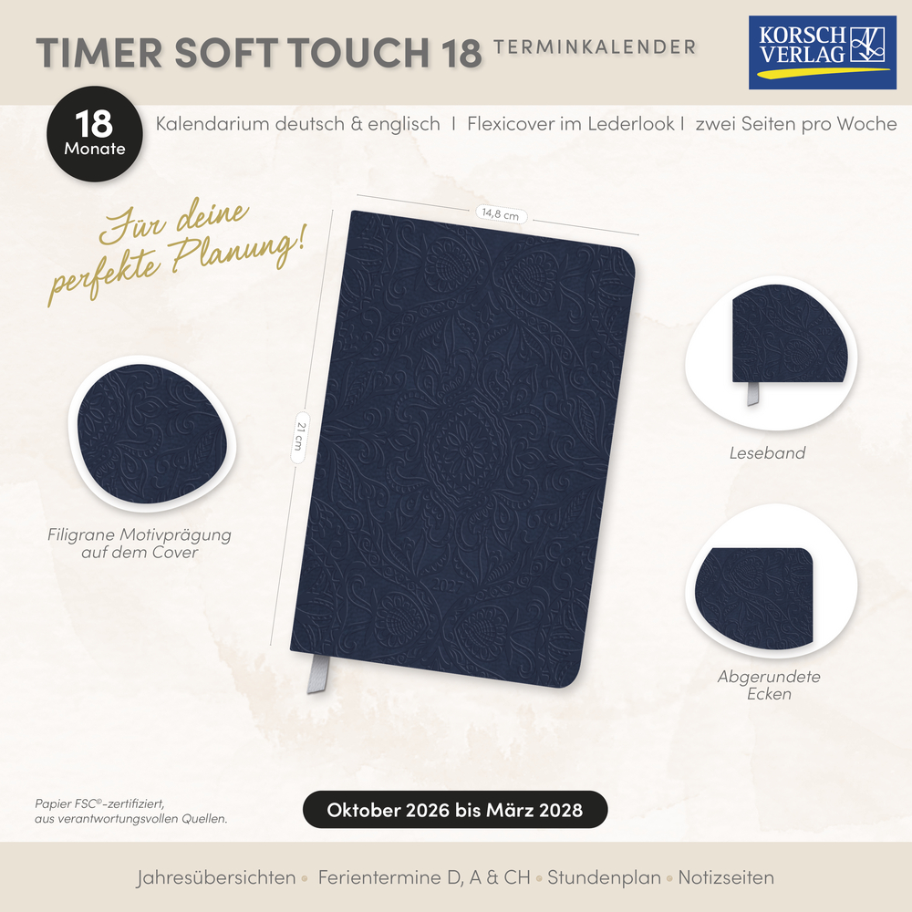 Timer Soft Touch 18 Monate dunkelblau 2027/2028