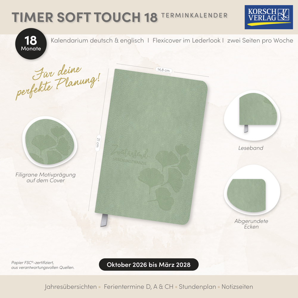Timer Soft Touch 18 Monate jade 2027/2028