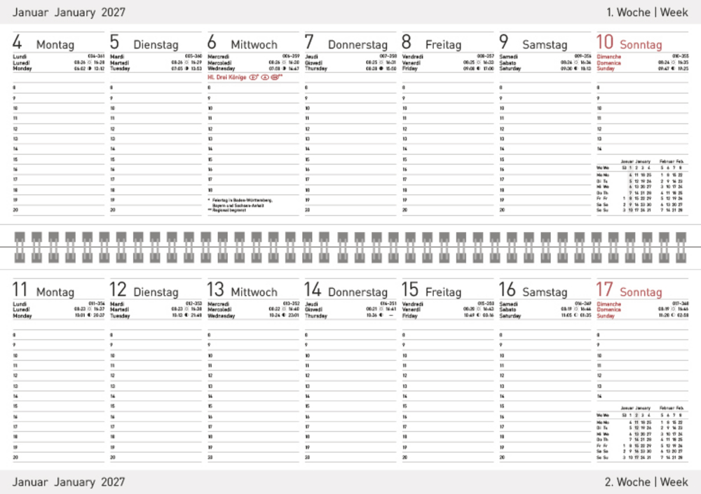 - Format: 29,8 x 10,5 cm; Farblich hervorgehobene Feiertage