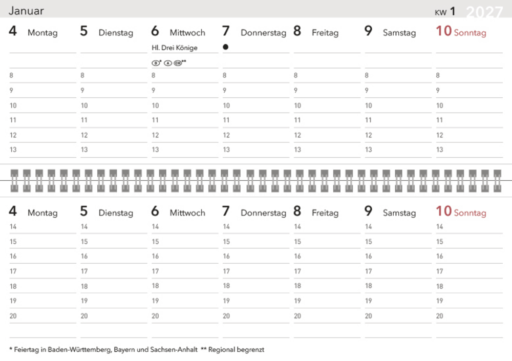- Perfektes Lay-Flat -Verhalten dank Spiralbindung