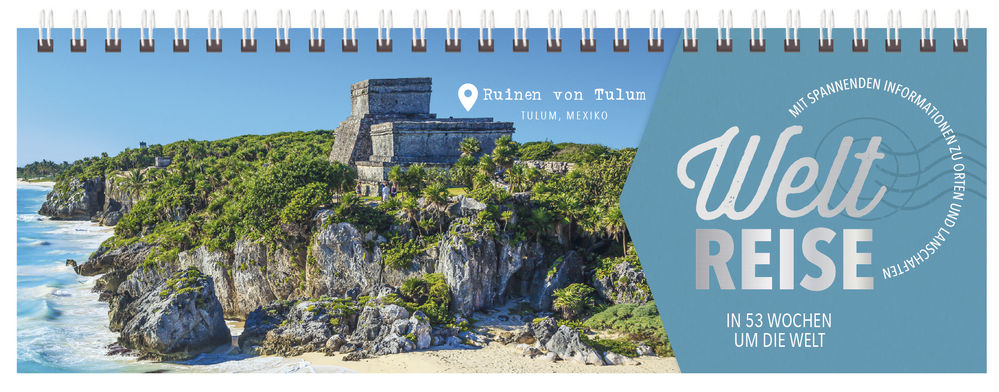 Dieser Tischkalender nimmt den Betrachter mit auf eine Reise rund um die Welt – mit faszinierenden Bildern und spannenden Infotexten zu Ländern, Kulturen und Landschaften. Der dekorative Aufsteller bietet jede Woche viel Platz für deine täglichen Termine und Notizen. Dabei kommt er überhaupt nicht kleinkariert daher, sondern im trendigen dotted Design und bietet dir somit individuelle Gestaltungsfreiheit bei deiner Planung.