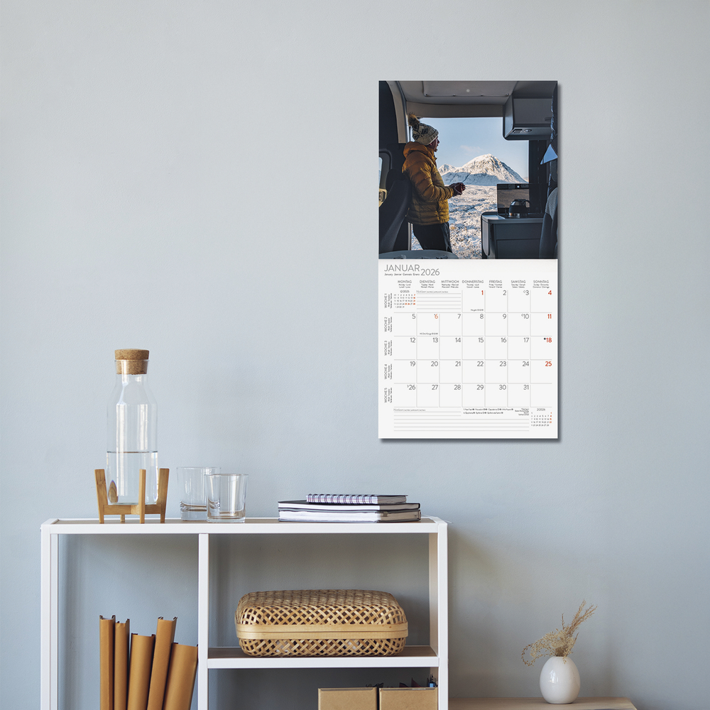 Mit dem selbst ausgebauten Campervan die Welt entdecken und überall dort zu bleiben, wo es einem gefällt, ist eine sehr beliebte Form des Reisens geworden. Dieser Kalender bringt das Leben auf vier Rädern an die Wand. Mit viel Platz zum Eintragen und einer Übersicht mit Ferienterminen.